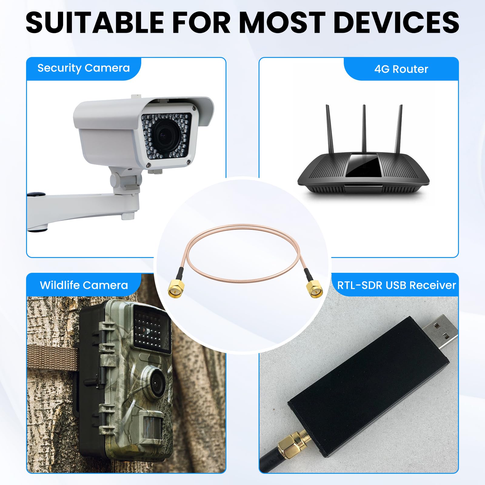 SMA Male Coaxial Coax Cable Assembly, used to router, antenna, signal enhancer, wireless adapter etc.