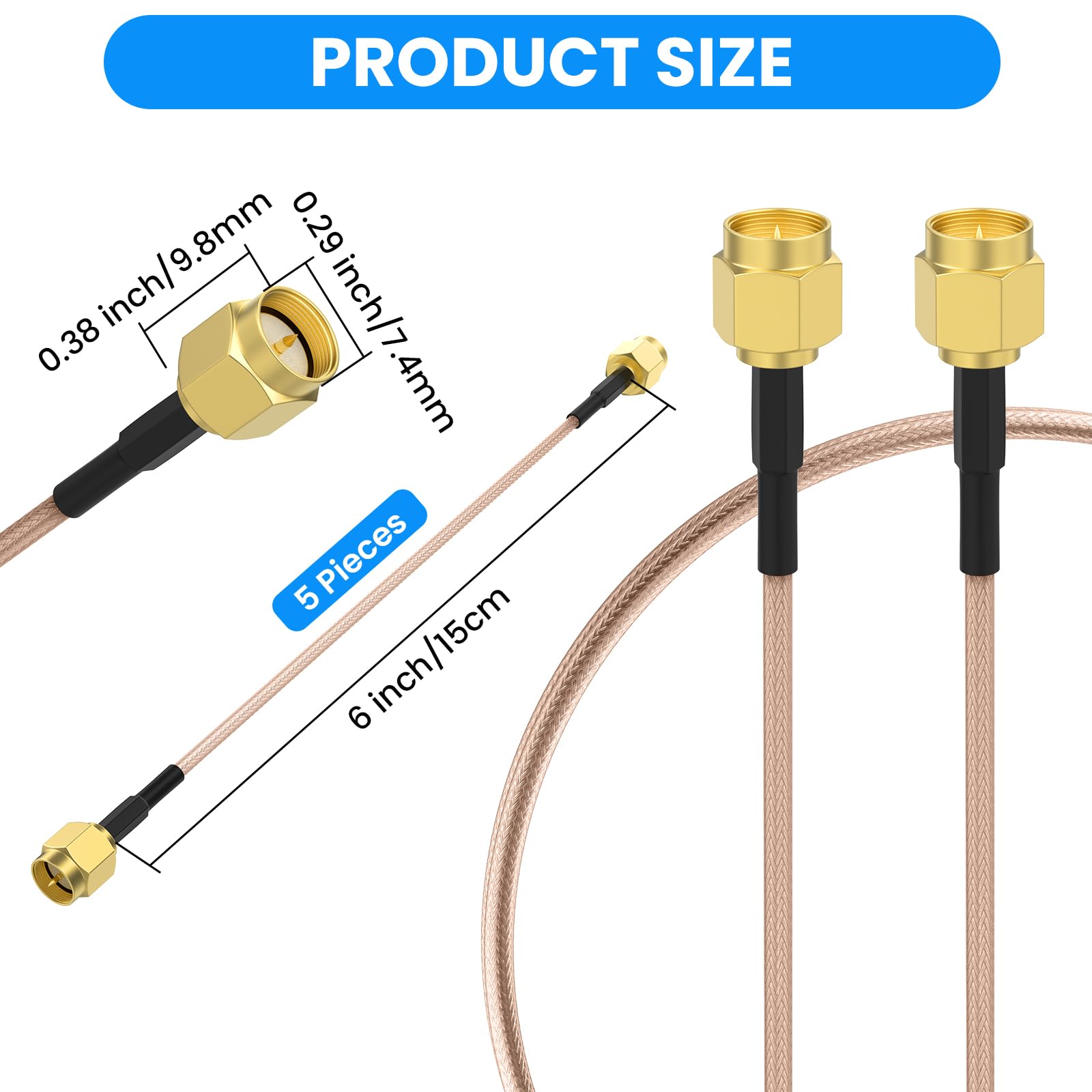 Package Include: 5pcs RG316 SMA Male to SMA Male Coaxial Coax Cable Adapter.