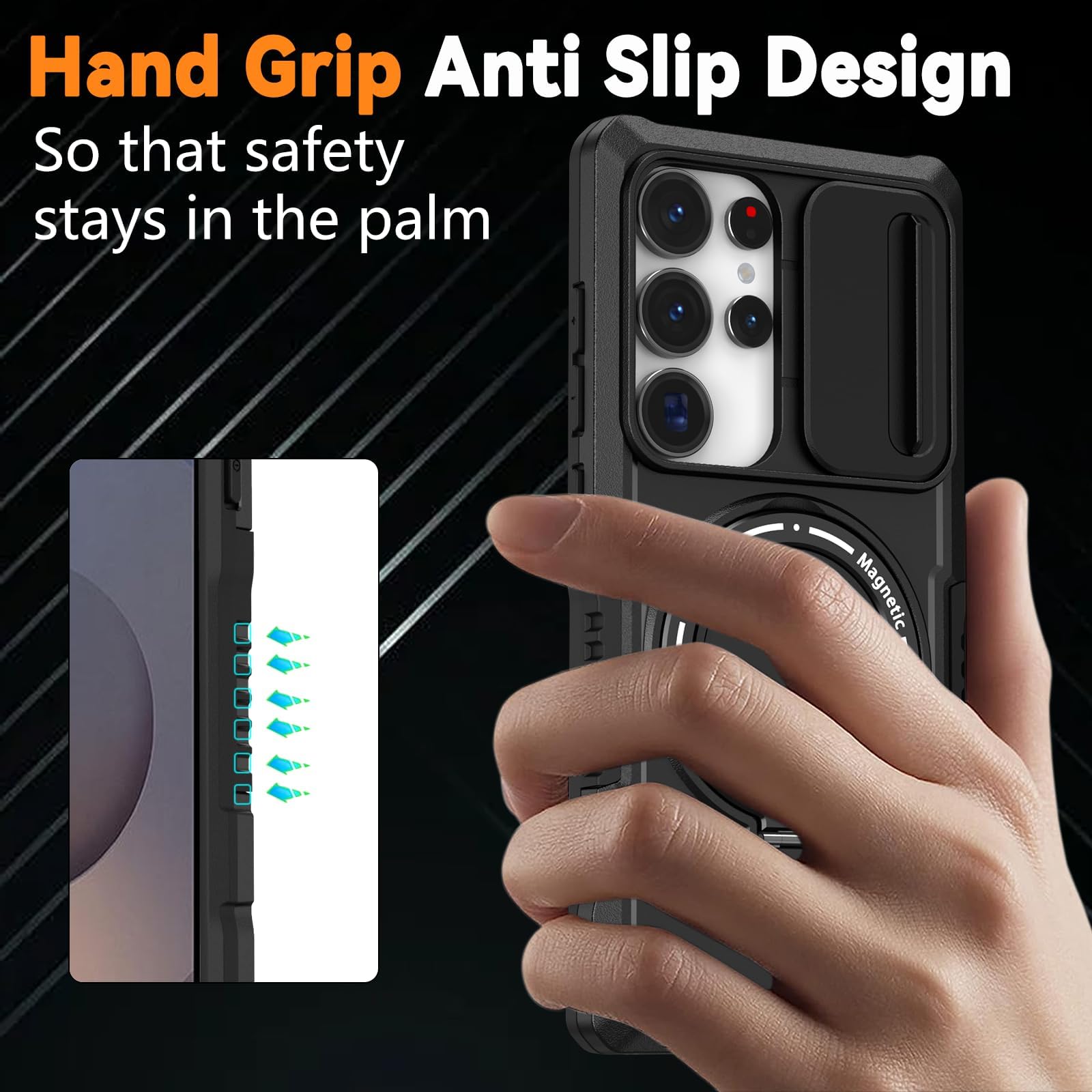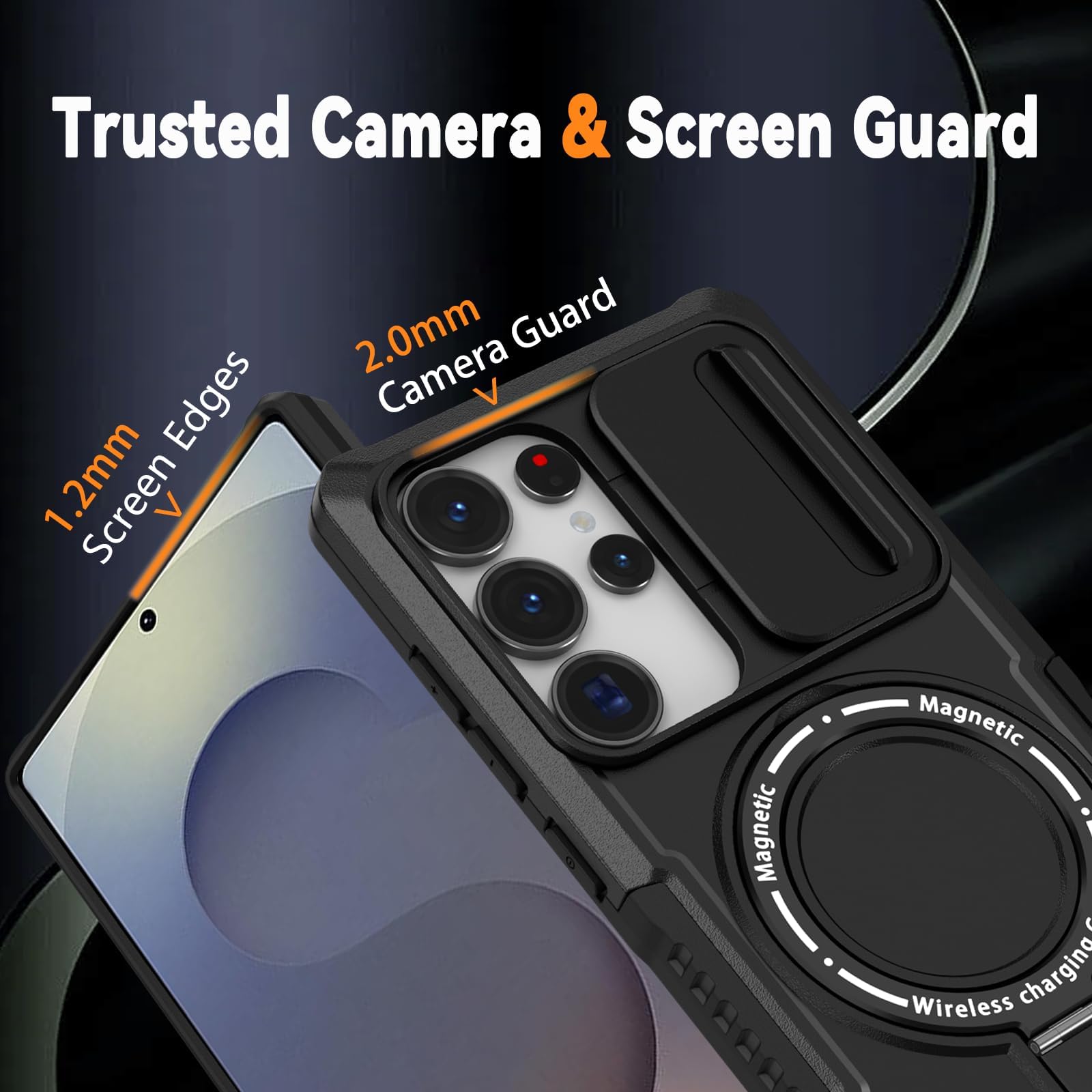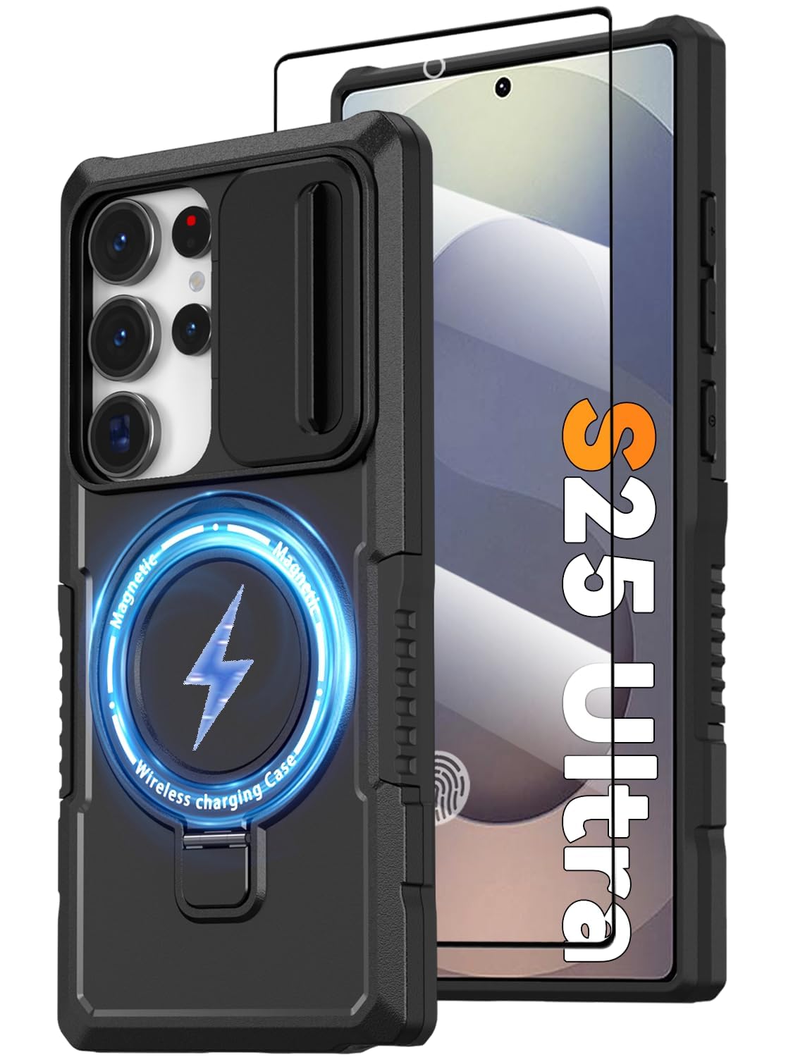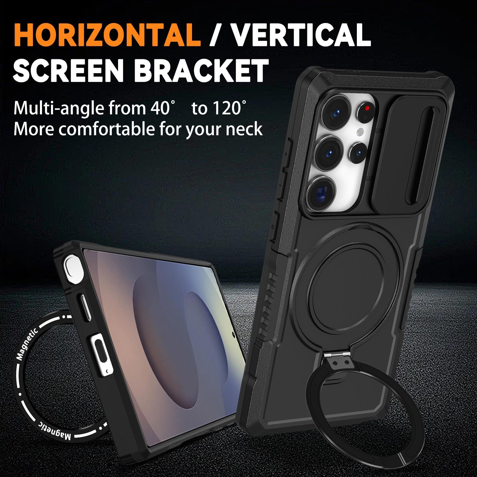 【Magnetic Ring Stand】This Samsung S25 Ultra phone case with magnetic ring kickstand provide two stand modes for vertical and horizontal viewing, can help you keep your hands free when watching web pages and videos. It can also be attached to a magnetic car mount (Not includes the magnetic car mount holder).