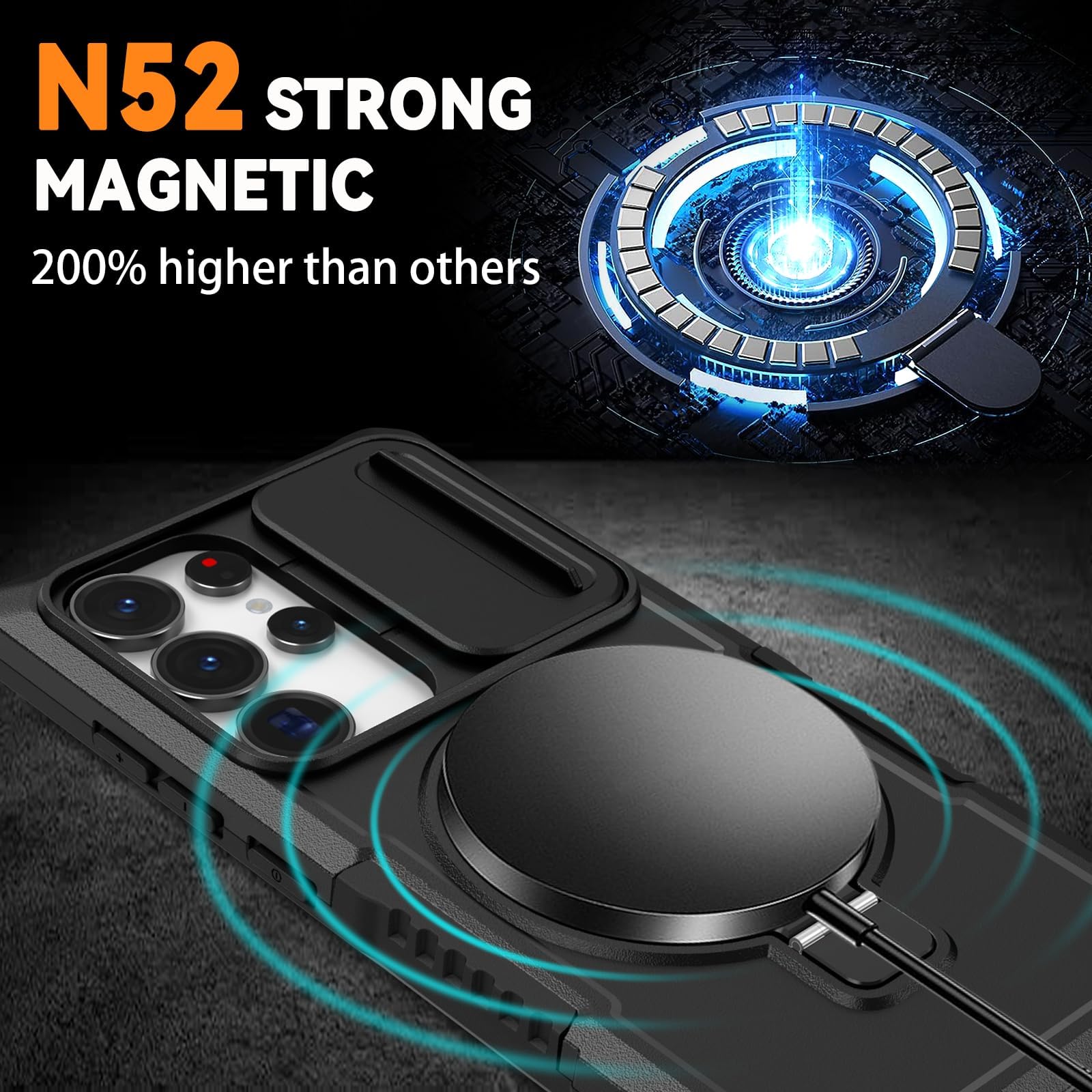 【Compatible with MagSafe】The Samsung Galaxy S25 Ultra case built-in MagSafe function and automatically adsorbs into place with magnetic charging, making charging your phone more convenient and faster. It is compatible with all MagSafe accessories like leather wallets, wireless chargers, battery packs, and car mounts.