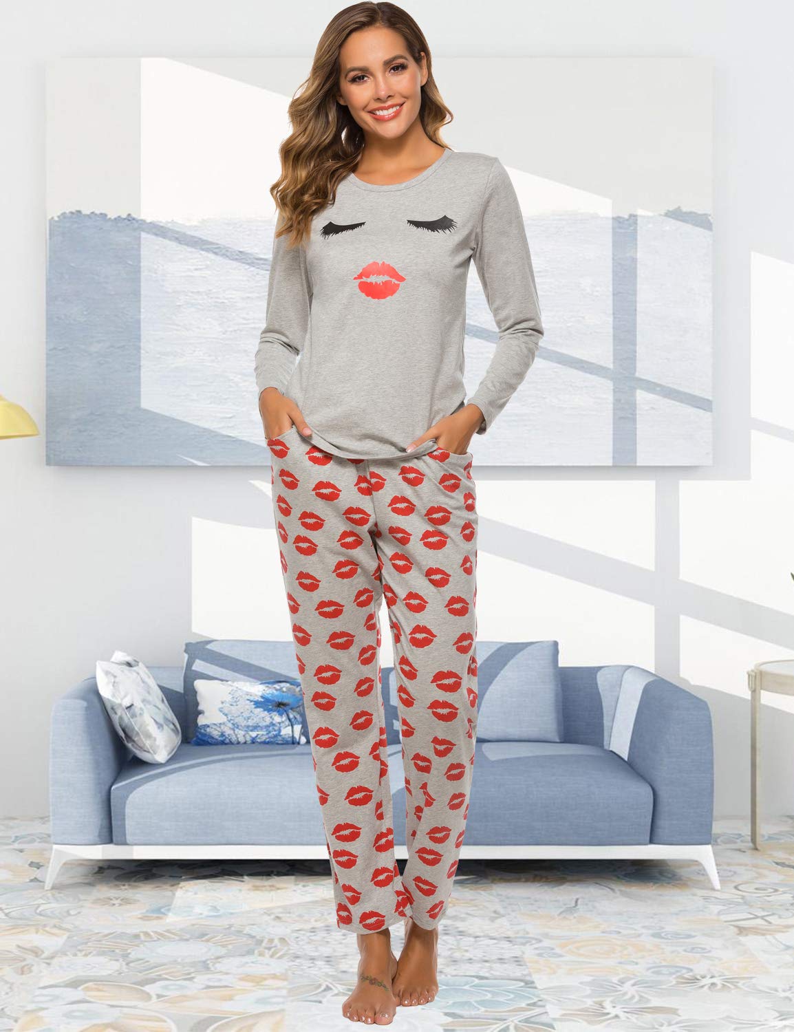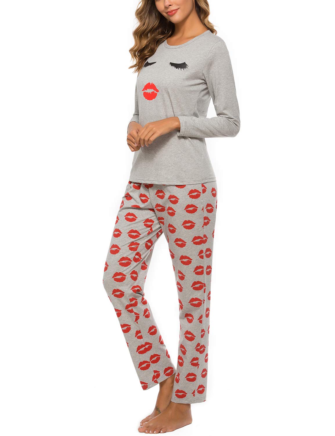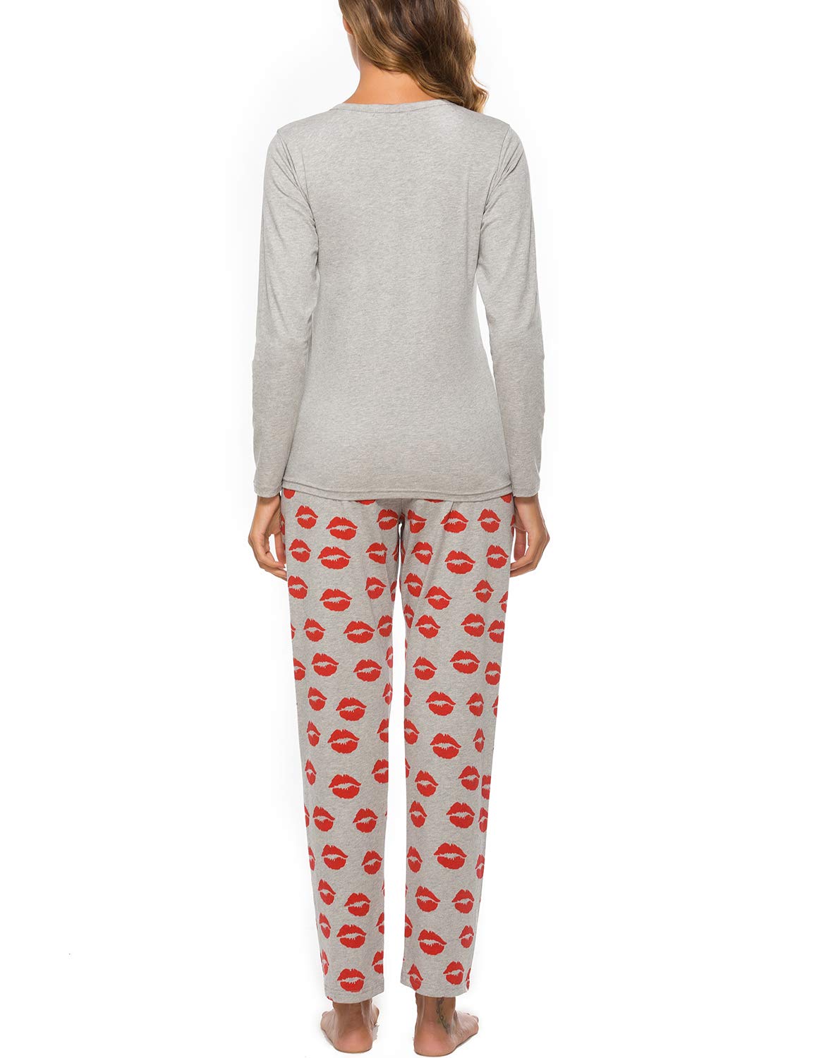 2 Pices Pajamas: This pajama top with long sleeve,round neck,and playful print design, full-length pants with comfortable elastic waistband and drawstring closure, fit well with any size waist , and also with playful print, the soft, breathable fabric for you all-night comfort, relaxing.