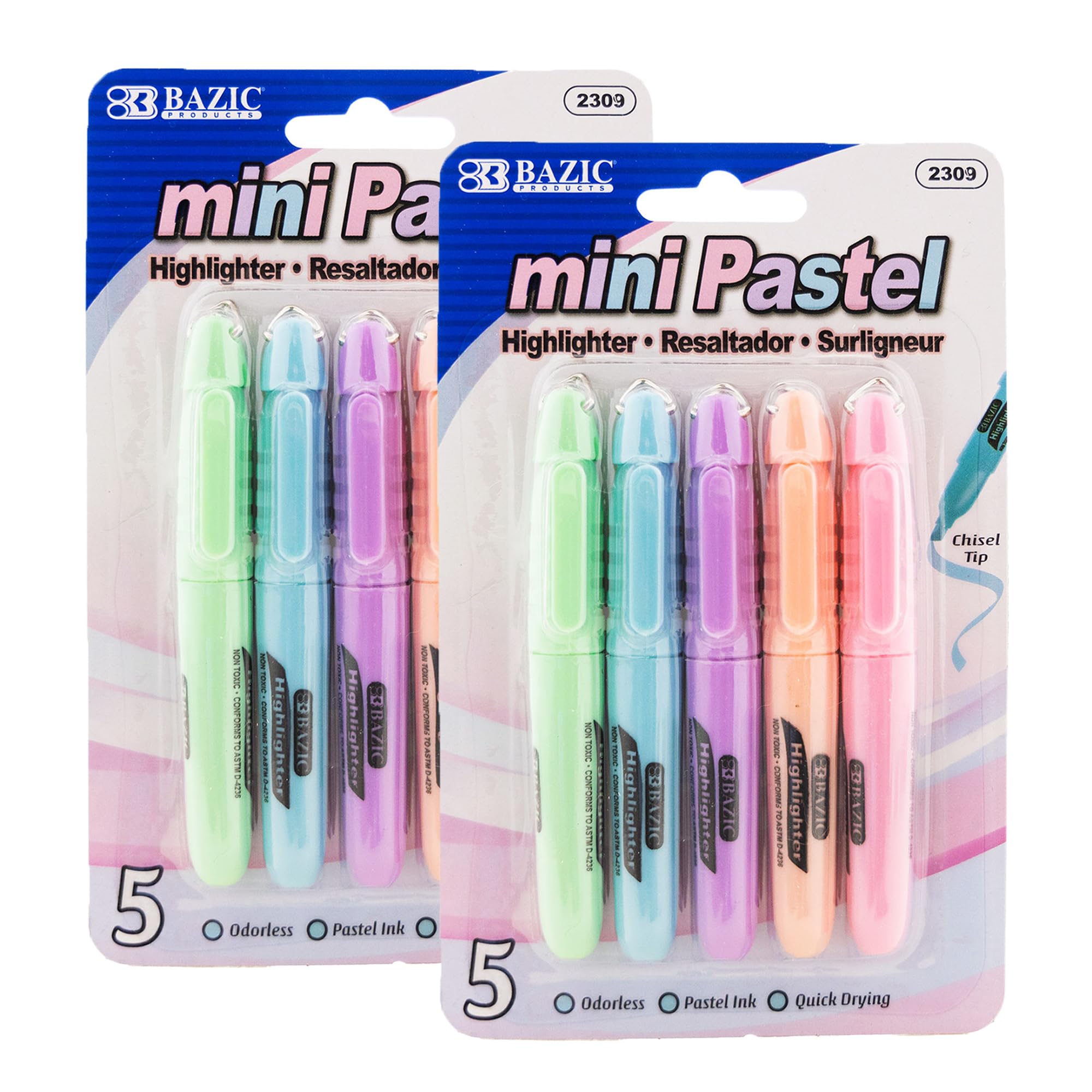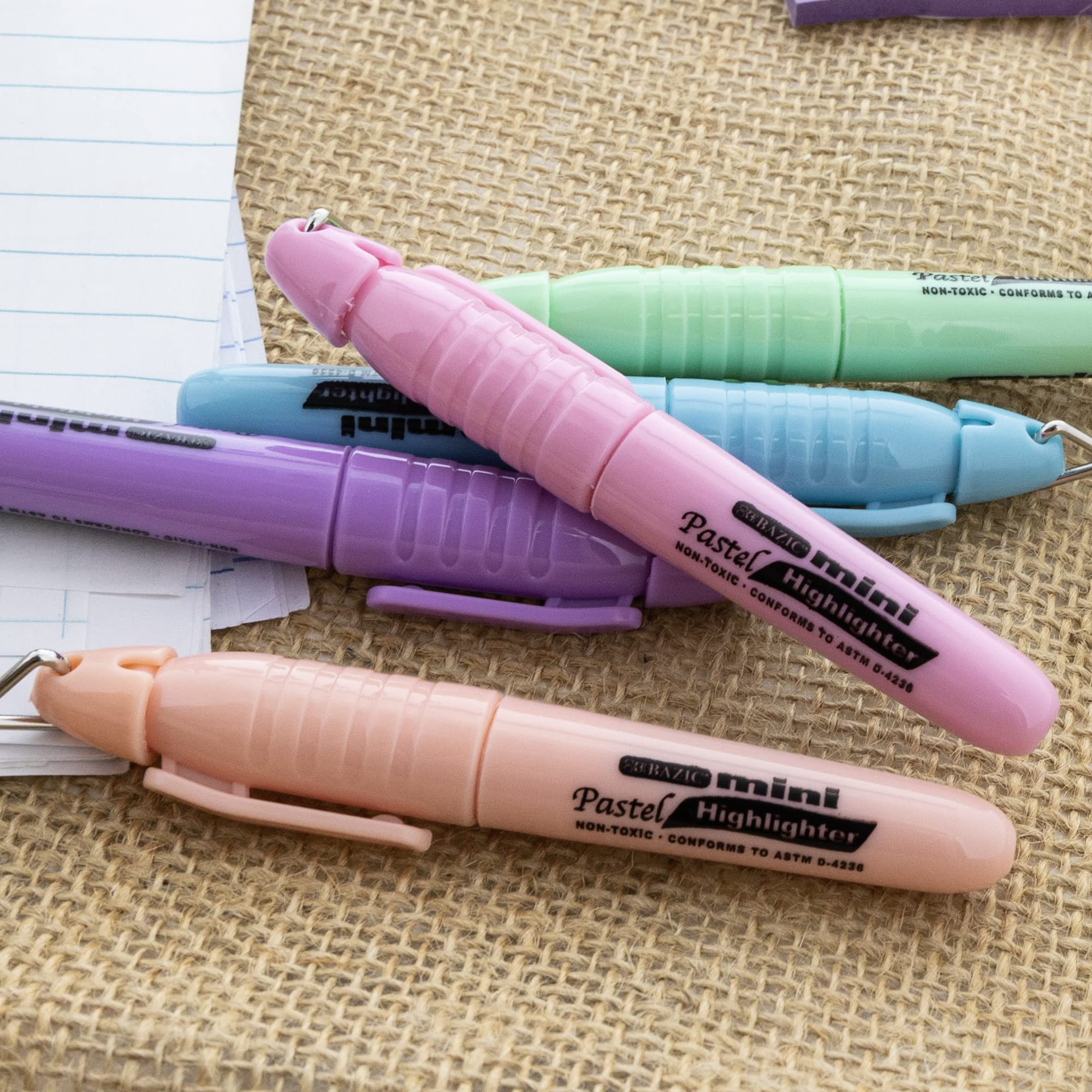 Maximize clarity and efficiency with BAZICβs pastel color highlighter set, engineered for precise emphasis and everyday organization. Each pen delivers clean, vibrant strokes that make important text stand out without smudging or bleeding through. Whether youβre annotating, summarizing, or color-coding, youβll appreciate how smoothly the ink flows across various paper types. The durable chisel tip lets you switch effortlessly between wide strokes and fine edges, replicating the function of both a broad tip highlighter and a fine line highlighter in one tool. The sturdy tip holds its shape even after repeated use, offering consistent performance from the first mark to the last. The translucent barrel clearly indicates ink color so you always know when a refill or replacement is needed. Designed for comfort during long sessions, the desk-style barrel sits naturally in your hand and stays securely in place thanks to the non-rolling cap design. This construction supports clean, controlled highlighting without slips or spills, something that appeals whether you're in meetings, lectures, or study zones. This set is ideal for work, school, or home use. Label it your go-to office highlighter for reports, your favorite school highlighter for textbooks and assignments, or your study highlighter for notes and exam prep. From underlining key ideas to coloring headers, these markers serve multiple roles in one compact set. Trust in BAZICβs legacy of dependable stationery. As a brand committed to consistent quality, each highlighter in this set combines comfort, durability, and precision. Whether youβre organizing study guides, preparing meeting materials, or updating planners, BAZIC helps you highlight what matters, cleanly and confidently.
