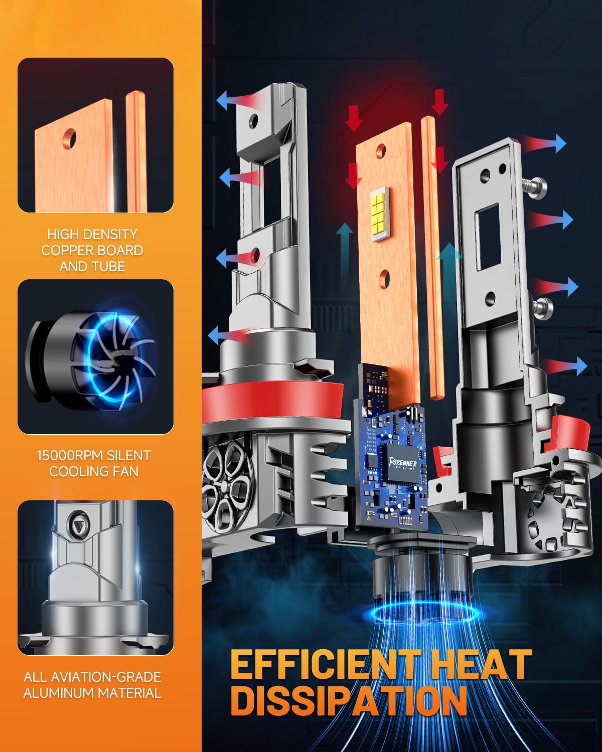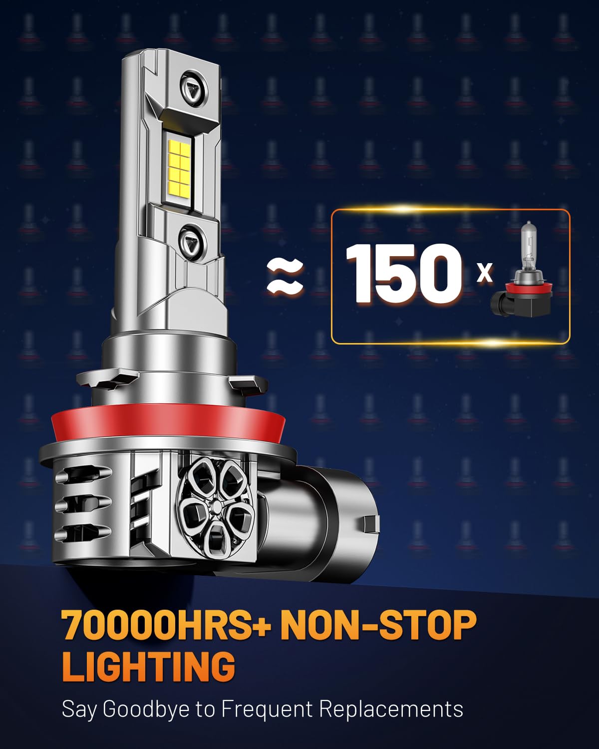 ใ๐๐,๐๐๐+ ๐๐จ๐ฎ๐ซ๐ฌ ๐๐ฎ๐ซ๐๐๐ข๐ฅ๐ข๐ญ๐ฒ | ๐๐ง๐ ๐ข๐ง๐๐๐ซ๐๐ ๐๐จ๐ซ ๐๐จ๐ง๐ ๐๐ฏ๐ข๐ญ๐ฒใCrafted from aerospace-grade aluminum, the H11 fog bulb integrates a 20,000RPM ultra-quiet cooling fan and a unique hollow structure to maximize airflow. Enhanced thermal efficiency โ 300% better cooling โ guarantees up to 70,000 hours of lifespan, while the IP68 waterproof ensures dependable operation through rain, snow, and heat.