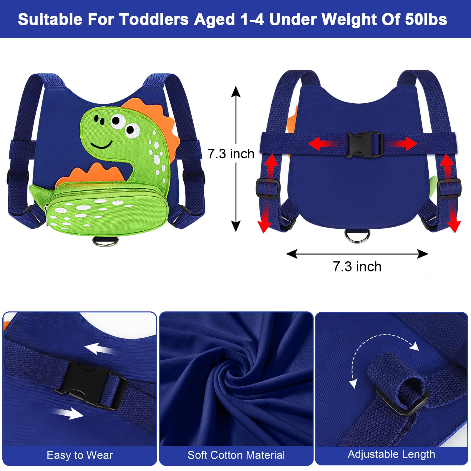 Adorable Design: Lovely and funny dinosaur pattern original designed keep kids innocent and stimulate imagination. Front extra pocket for snacks handkerchief, the equipped anti-lost rope or other mini necessities