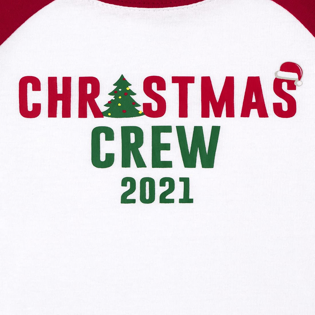Top features 'Christmas Crew 2021' graphic design at front; styled with rib-knit crew neck and banded sleeve cuffs