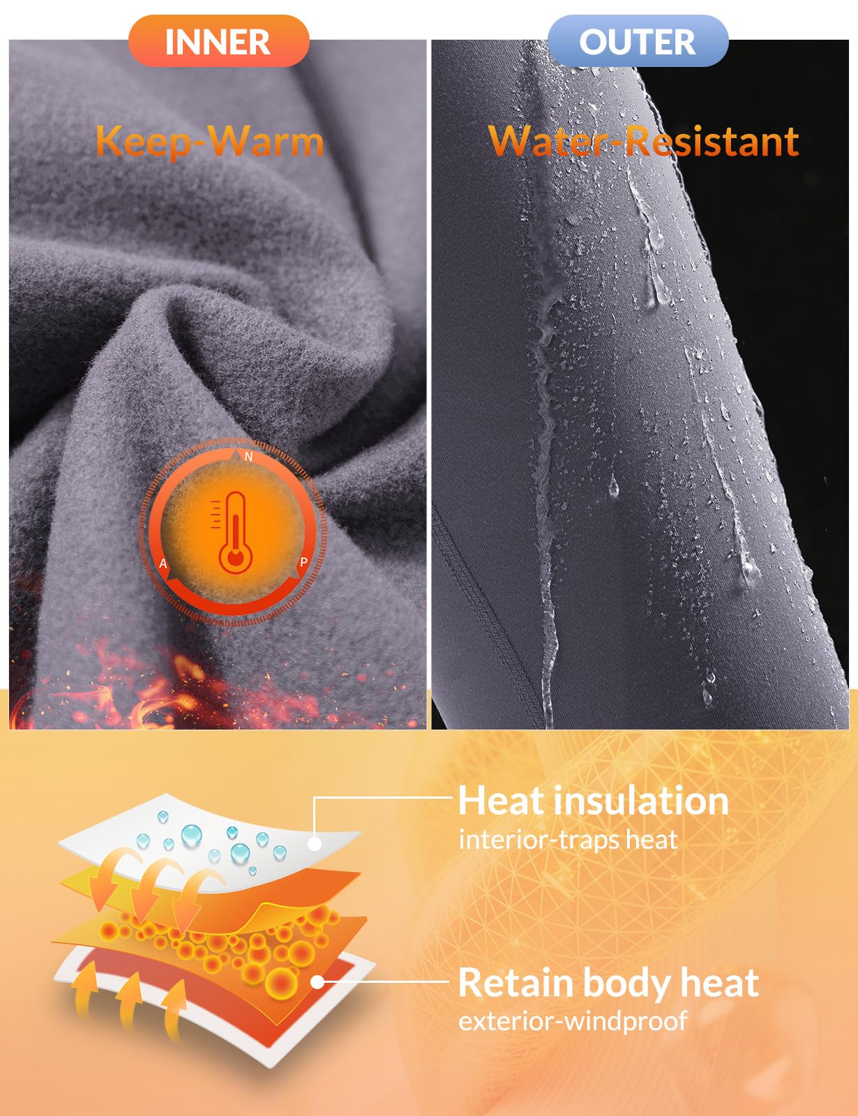 Material: The brushed fleece interior locks in heat for a dry warmth, while the stretchy fabric delivers you unrestricted movement. And with the inner leg seam removed, you'll be able to move freely and comfortably. Perfect for cold weather under 40°F.