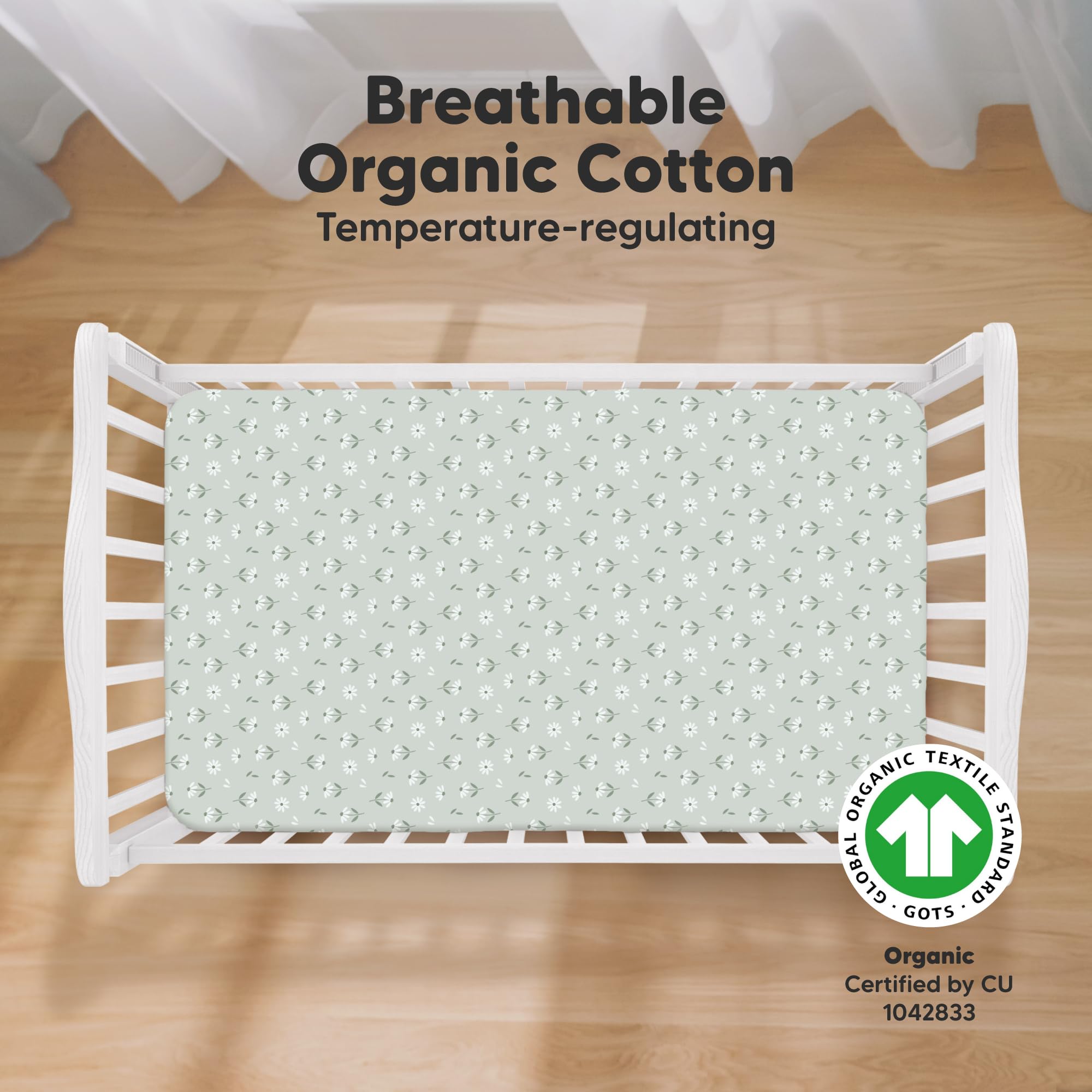 High Quality Elastic Band - Our organic cotton crib sheets, use premium elastic SnugFit Band seamlessly concealed to ensure these standard crib sheets stay in place securely for safe and soothing sleep.