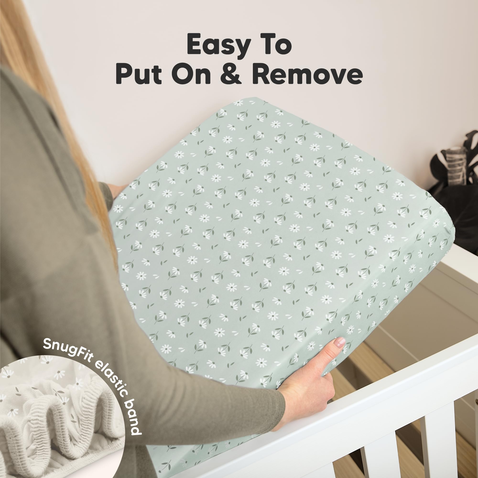 Easy To Put On - Our baby sheets for crib use SnugFit Tech, a smart fabric knit that stretches effortlessly for quick fitting and removal of the toddler bed sheets. No more struggling with rigid fabric!