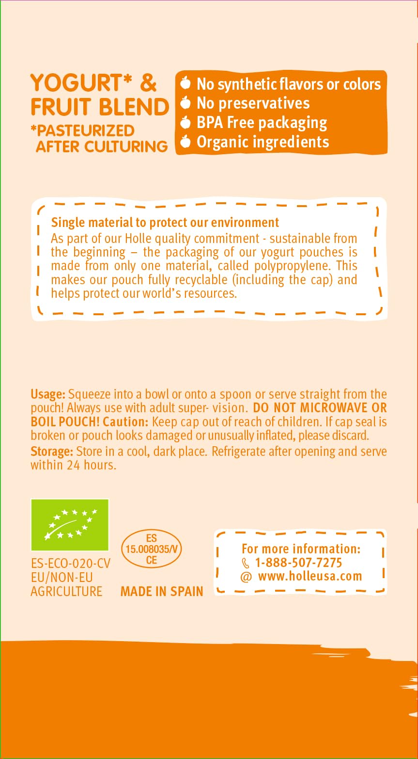 Healthy, Organic Ingredients - Holle baby yogurt pouches are made with USDA organic, non-GMO ingredients. This flavor combine drinkable yogurt with a delicious purée of apples and pears; and provides a great snack for babies eight months and up.