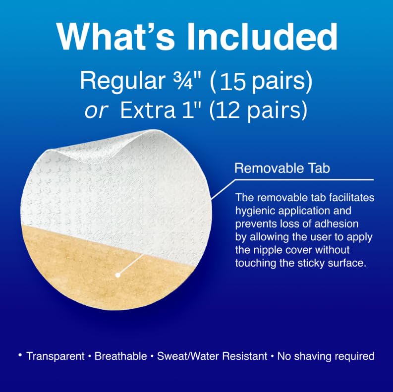 2 SIZES AVAILABLE - IMPORTANT: NipEAZE should fit so that it comes in contact with the areola only; not the skin around it. Regular 3/4" [15pairs]; Extra 1"(best for general use) [12pairs]