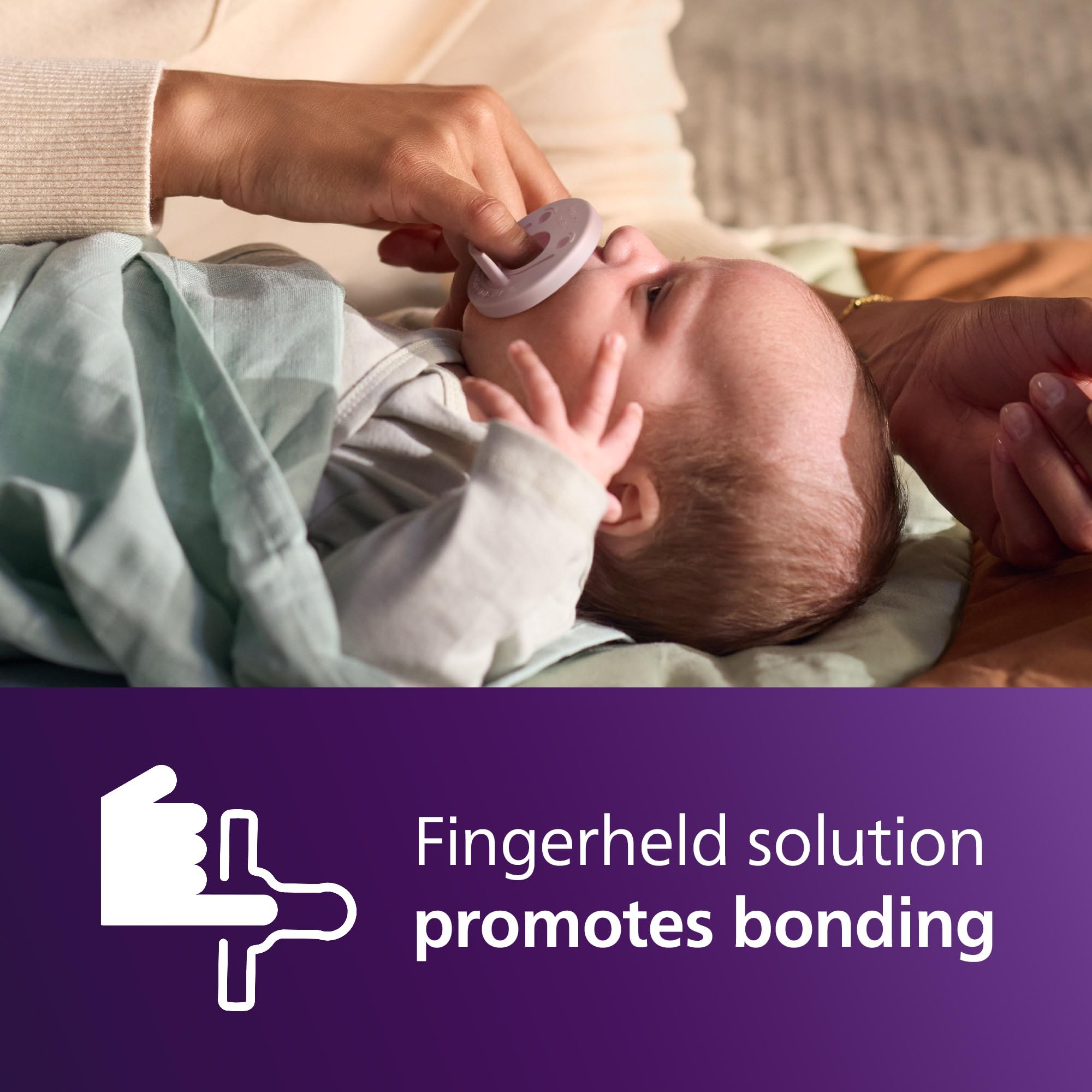 Fingerheld solution: uniquely designed so that you can place your finger in the nipple. This helps you create an even stronger bond by helping your baby suckle