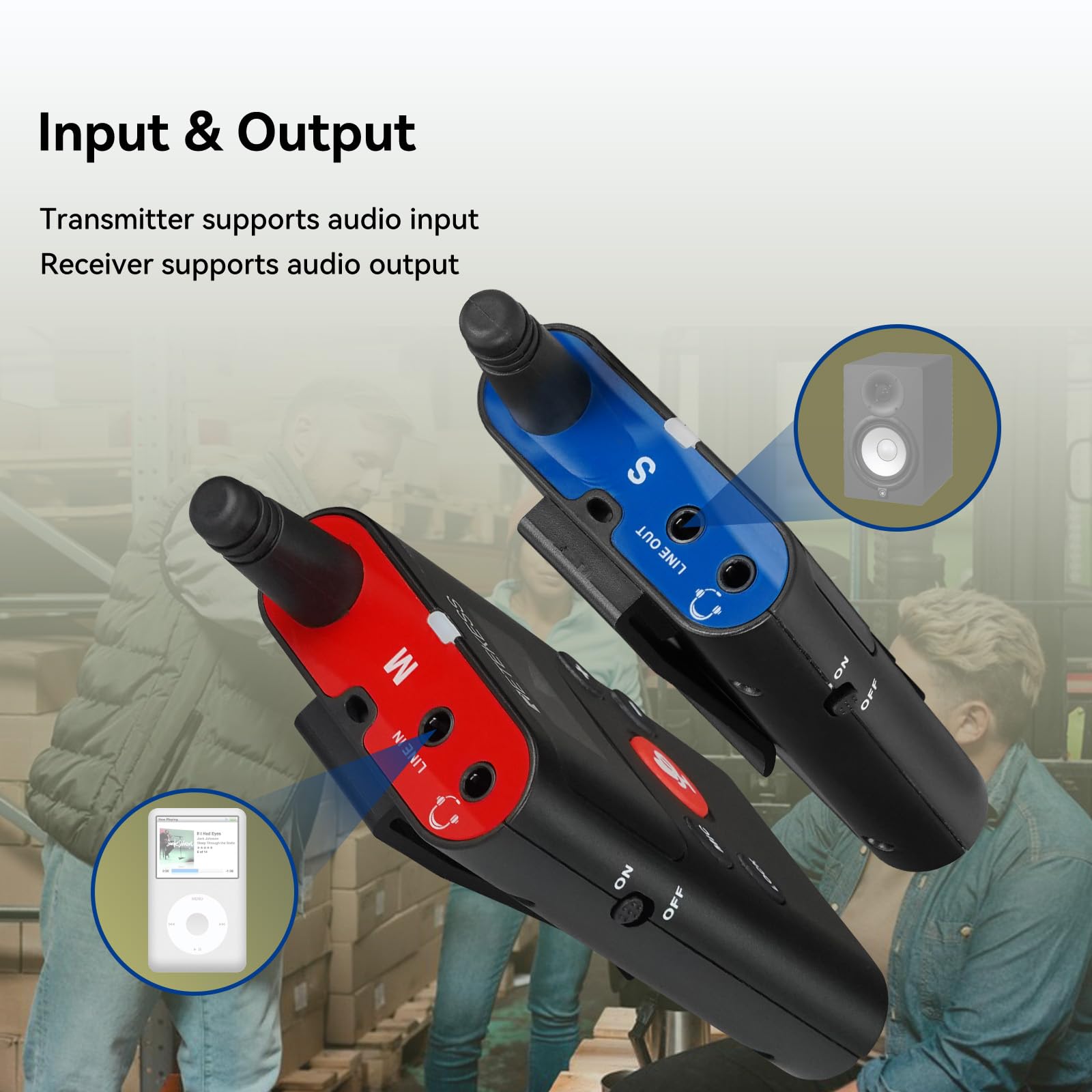 Audio input; the LINE-IN input audio jack offers clearer and stable audio quality; allowing you to connect external devices like smartphones or MP3 players; this enhances communication within the group; ensuring everyone stays informed during the factory tour
