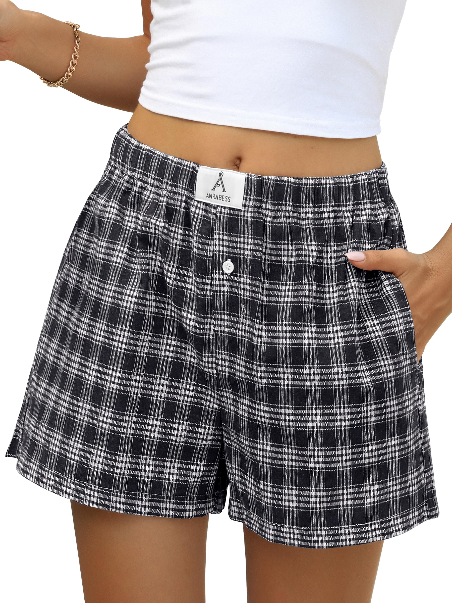 Features - Women's summer pajama bottoms, boxer shorts with pockets, plaid&stripe design, elastic waist, soft and breathable. This womens short perfect for daily wear, home, workout, beach, travel.