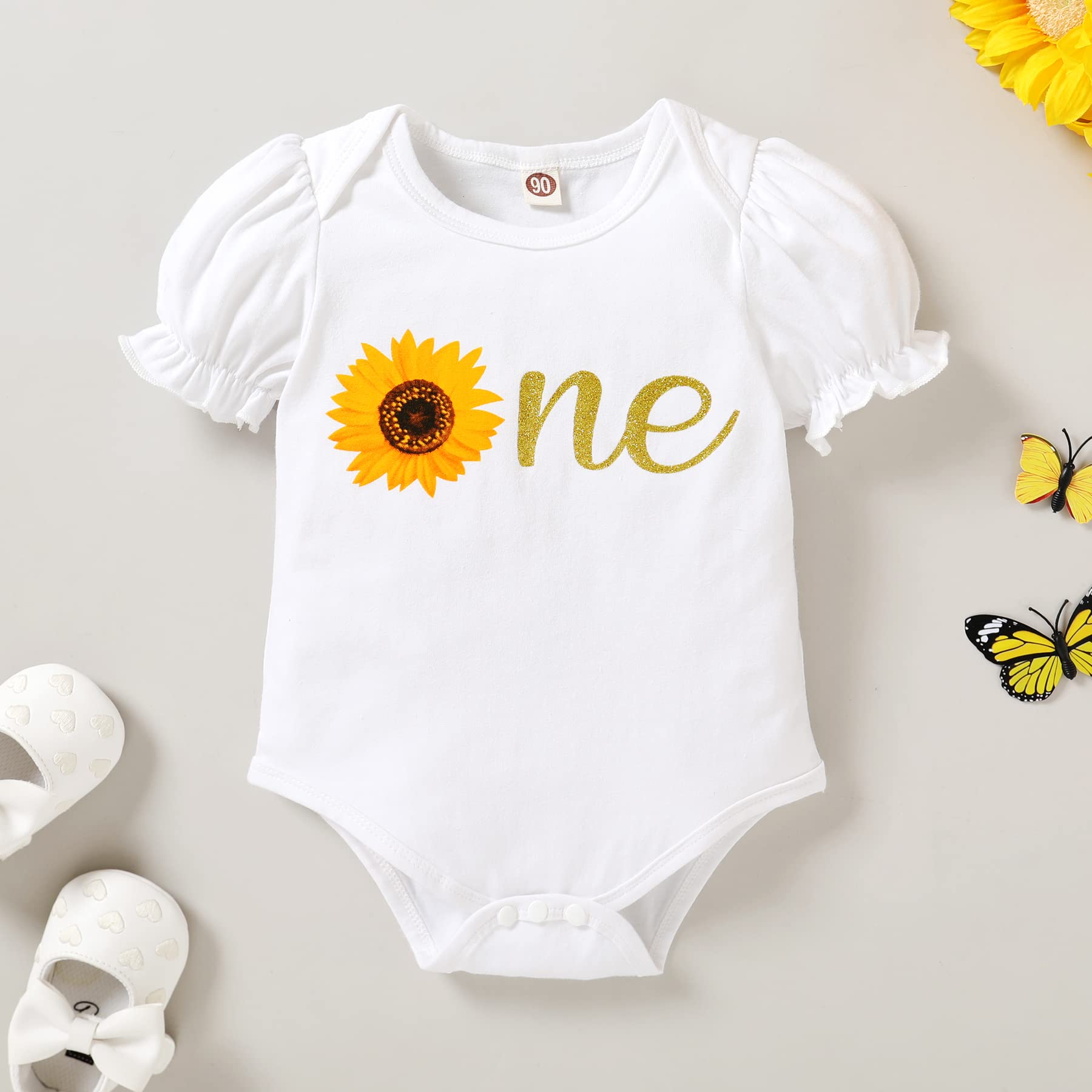 🐝Cute baby girl one 1st birthday outfit set, bee/sunflower clothes. Great birthday gifts for baby.
