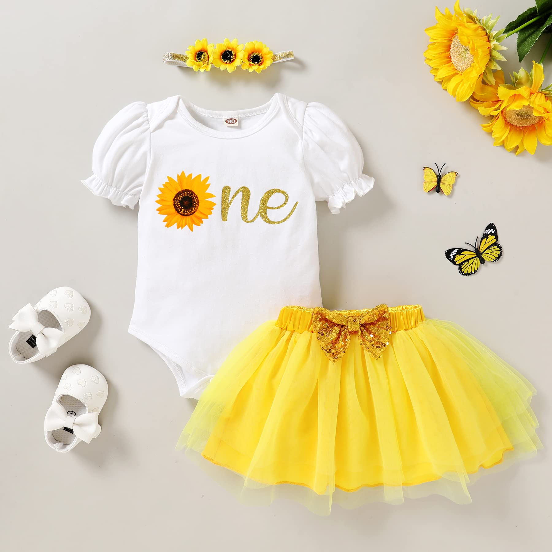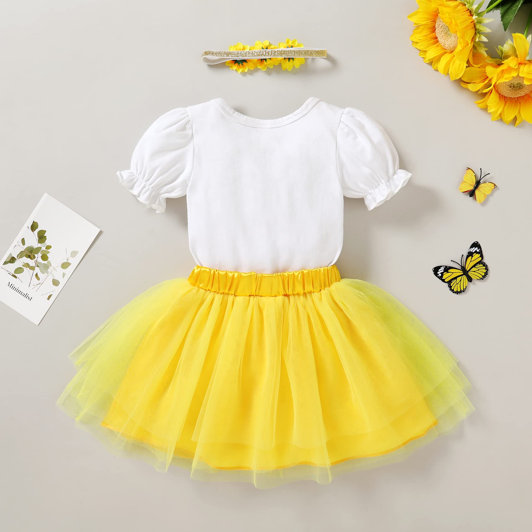 🐝Adorable Design: "ONE"bee/sunflower letters printed in organic cotton romper with yellow tutu skirt, so adorable for your little one.
