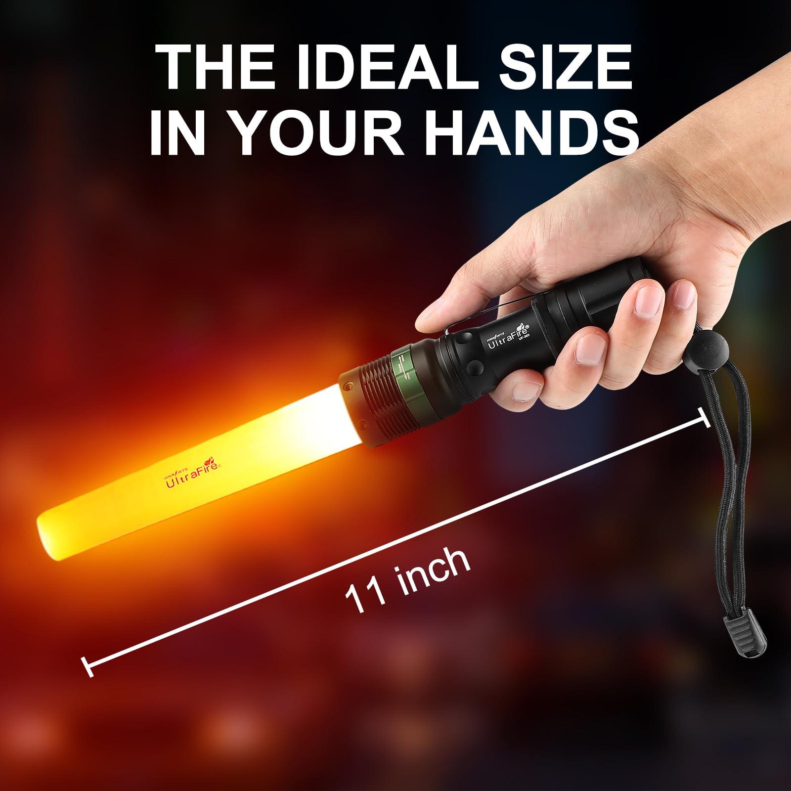 UltraFire UF-303 11-Inch 250LM LED Flashlight with Traffic Wand, Ultra Bright, Water Resistant, High / Low / Strobe, Orange Flashing