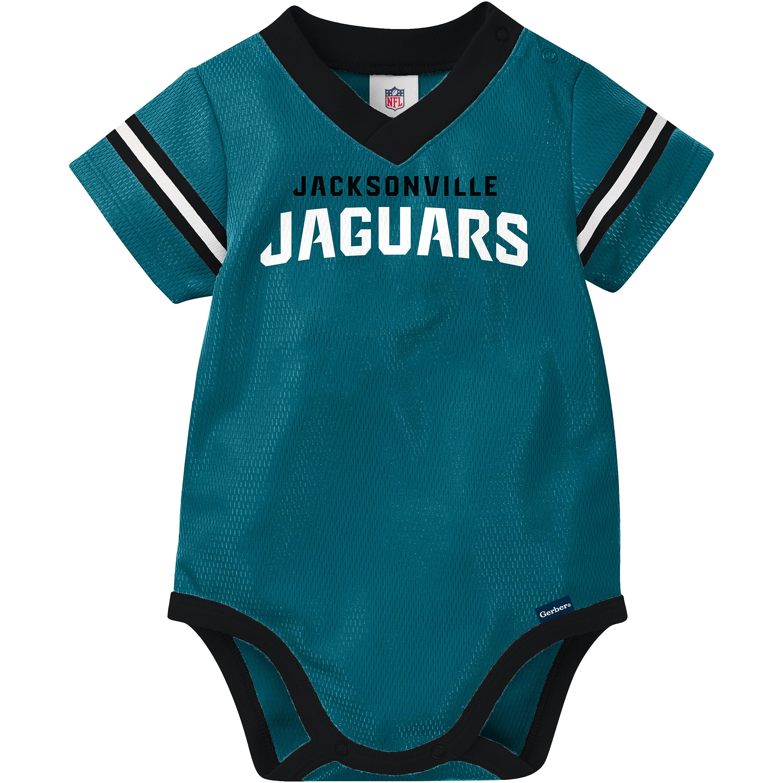 Team color jersey-style bodysuit with Jaguars screen print logo
