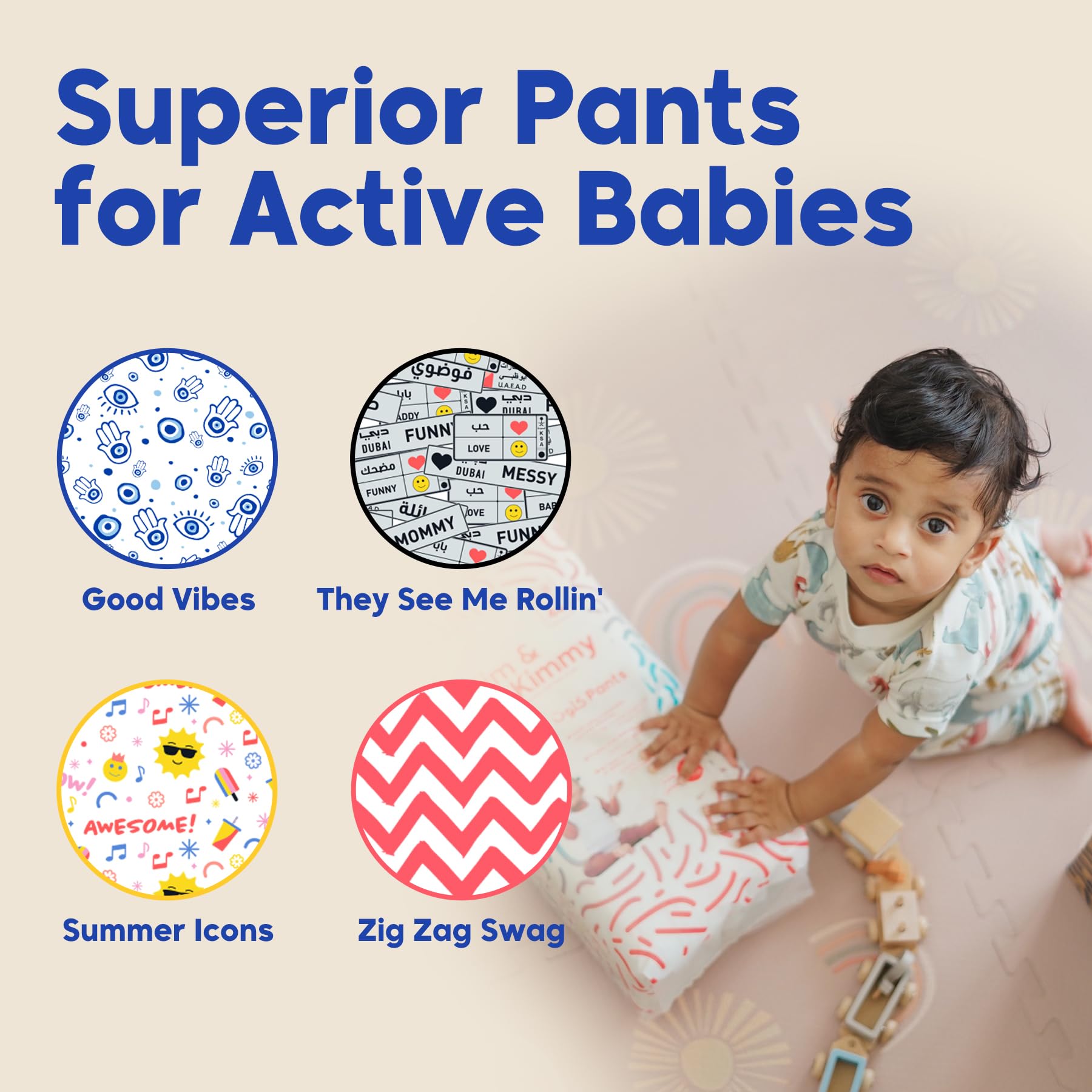 SIZE 5 FOR BABIES 26-38 LBS / 12-24 MONTHS, PACK OF 42 PANTS - Our Size 5 diaper pants are for babies weighing between 26 - 38 lbs, specially designed to be comfortable yet secure to ensure a tight and comfy fit while your active baby explores and plays.
