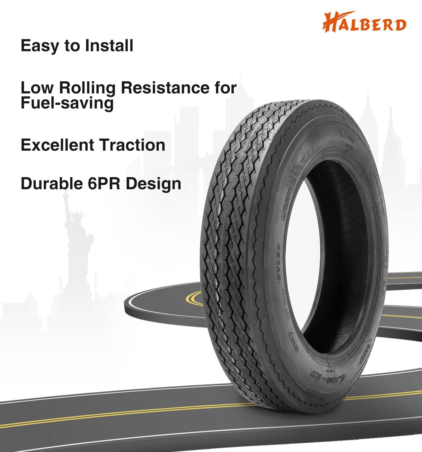 Made with high-class rubber material in exquisite workmanship, ensures ultra quality and reliability, easy to install. Durable, powerful and smooth-rolling 6PR design makes your trailer of high performance