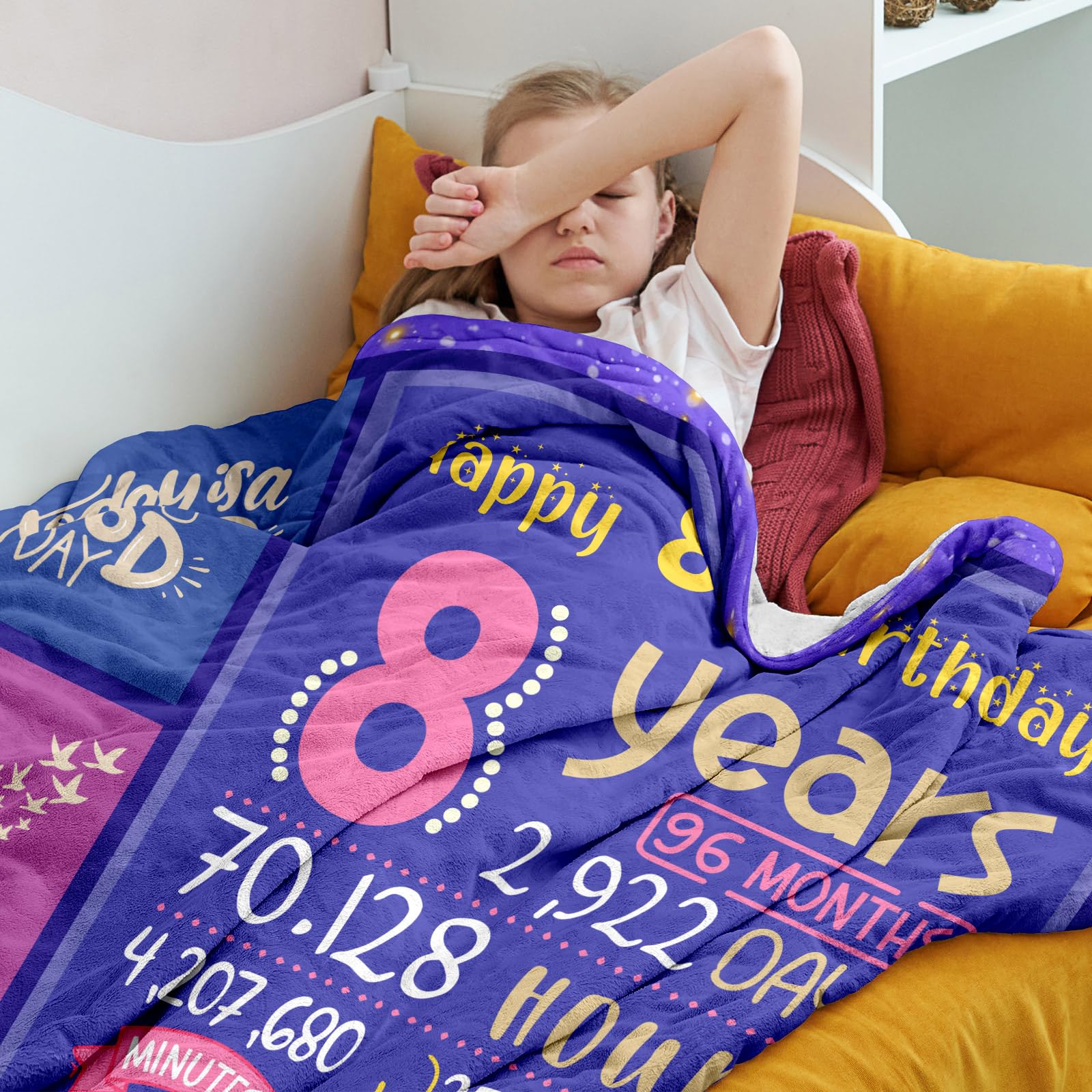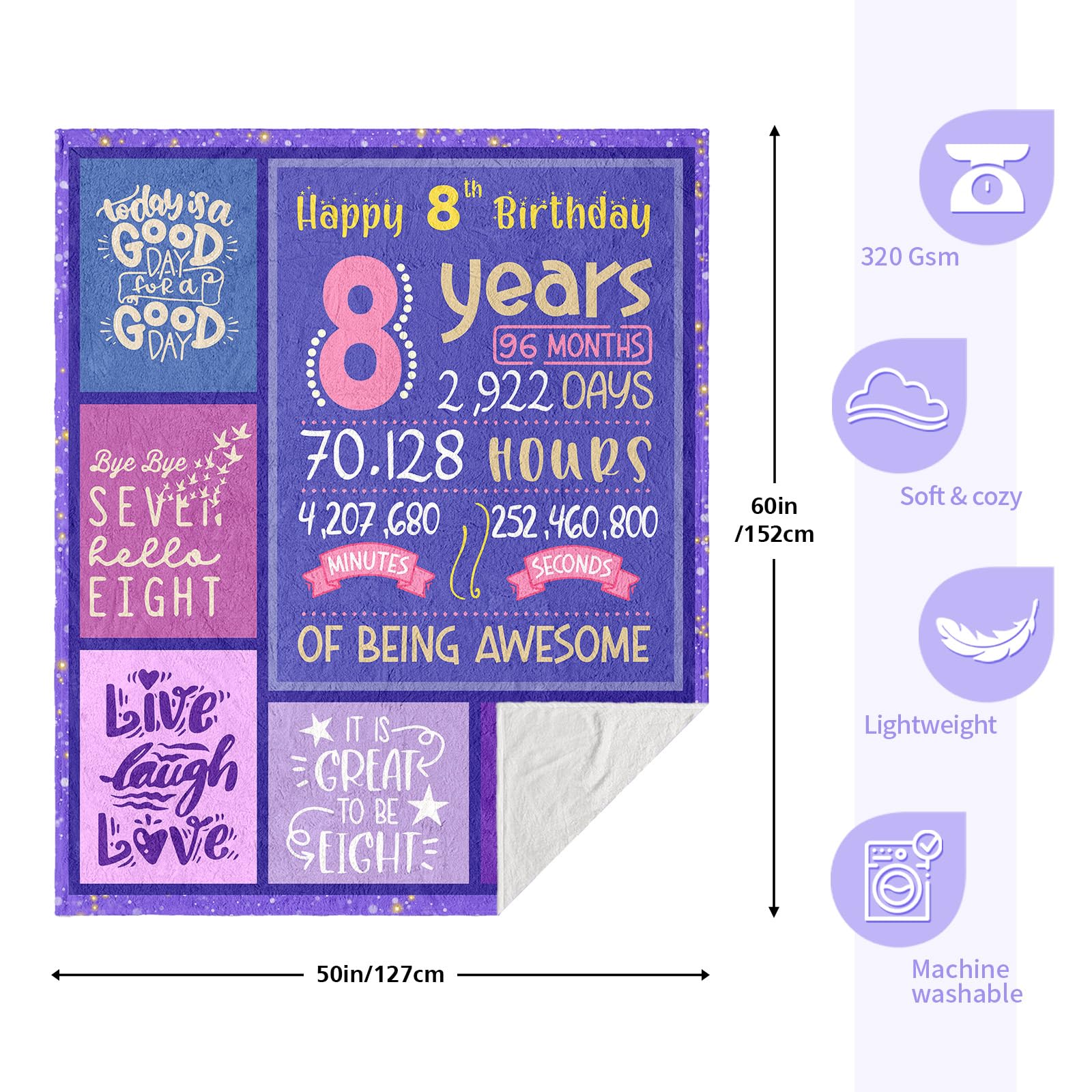 Birthday Gift for 8 Years Old Girl: This unique blanket is the best birthday gift for an 8-year-old girl, the perfect gift for the recipient to celebrate her special day with love and support. The interesting words on the blanket express your love and care for her. This must be a great birthday surprise for her.