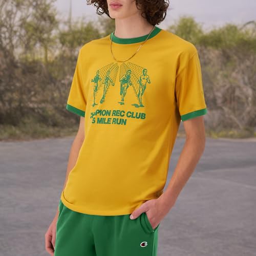 Description WELCOME TO CHAMPION LAND. A postcard-inspired graphic offers a vintage touch to this men's t-shirt. Made from a comfortable, supersoft cotton blend that feels great against the skin, this graphic tee is built to last with a ribbed collar and sturdy stitch work. Because good quality goes with basically anything, pair it with your best Champion jacket for the perfect streetwear look or with joggers for casual days. The iconic C logo hits at the sleeve, sending authentic brand vibes your way.