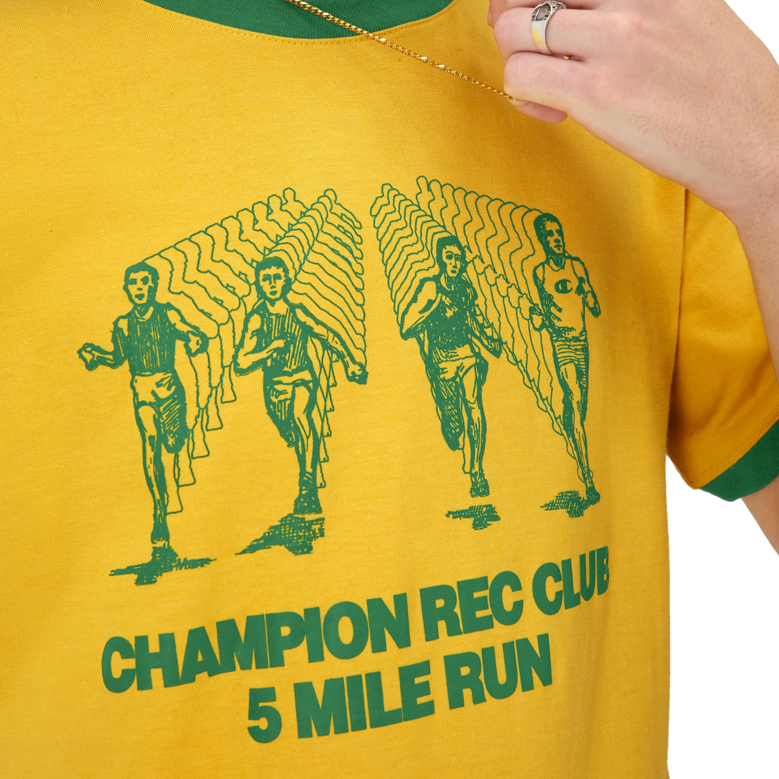 THE GRAPHIC - Contrasting sleeves and collar with a Champion Rec Club 5 Mile Run graphic for a vintage look.