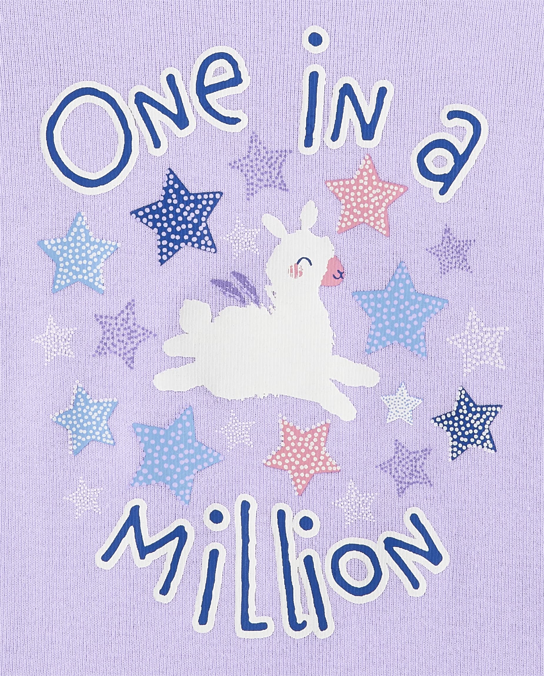 PAJAMA TOPS — Features long sleeves and rib-knit crew neck and sleeve cuffs: 1 top with 'One In A Million' with sheep graphic design at front; 1 top with allover sheep and number print; 1 top with allover sheep and dot print