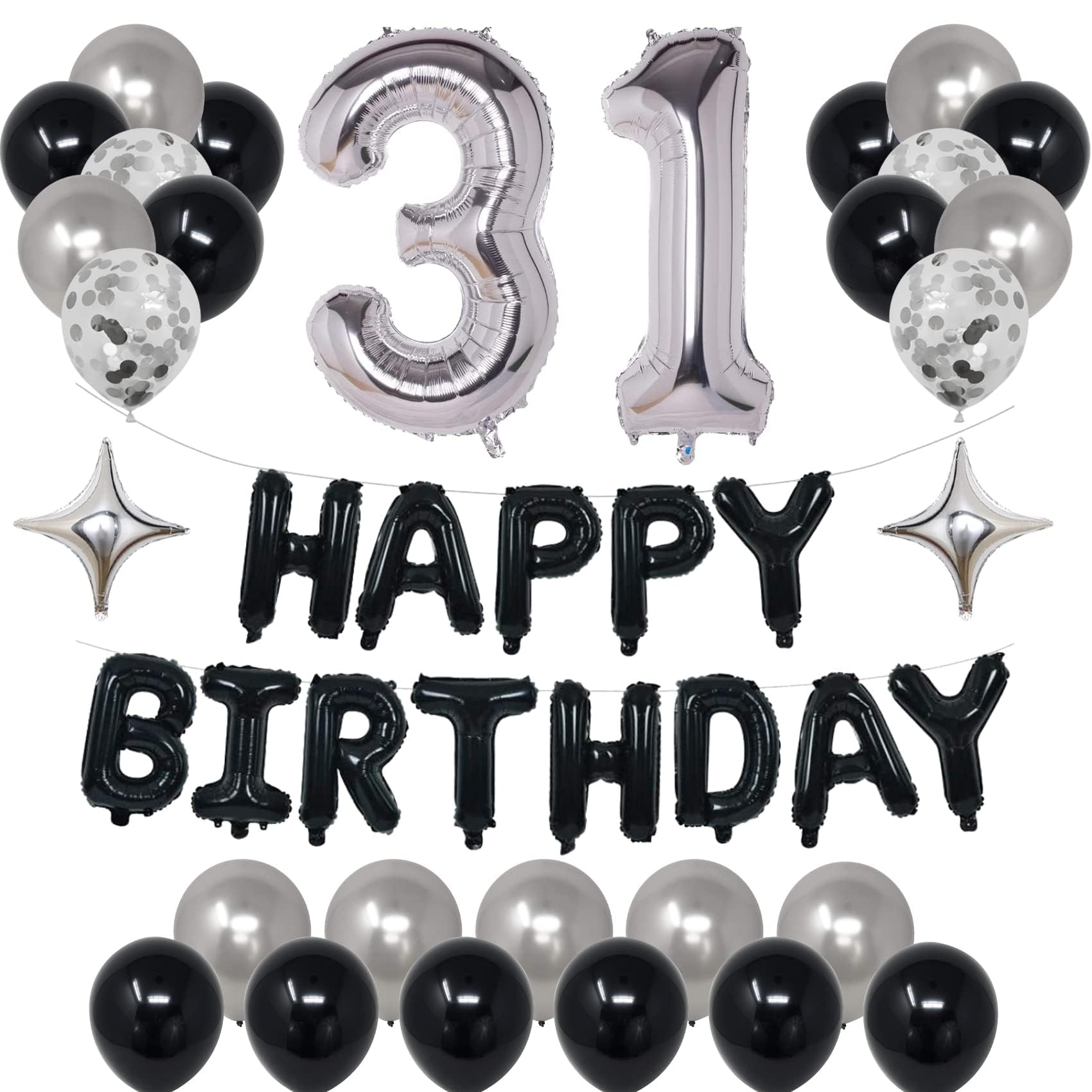 ►WHAT OUR KIT INCLUDES◄: This mysterious 31st happy birthday balloons decor package includes ‘HAPPY BIRTHDAY’ banner*1 set, number 31 foil balloons*2, star foil balloons*2, black latex balloons *12, silver latex balloons *10, silver confetti balloons*4, which will meet all your needs