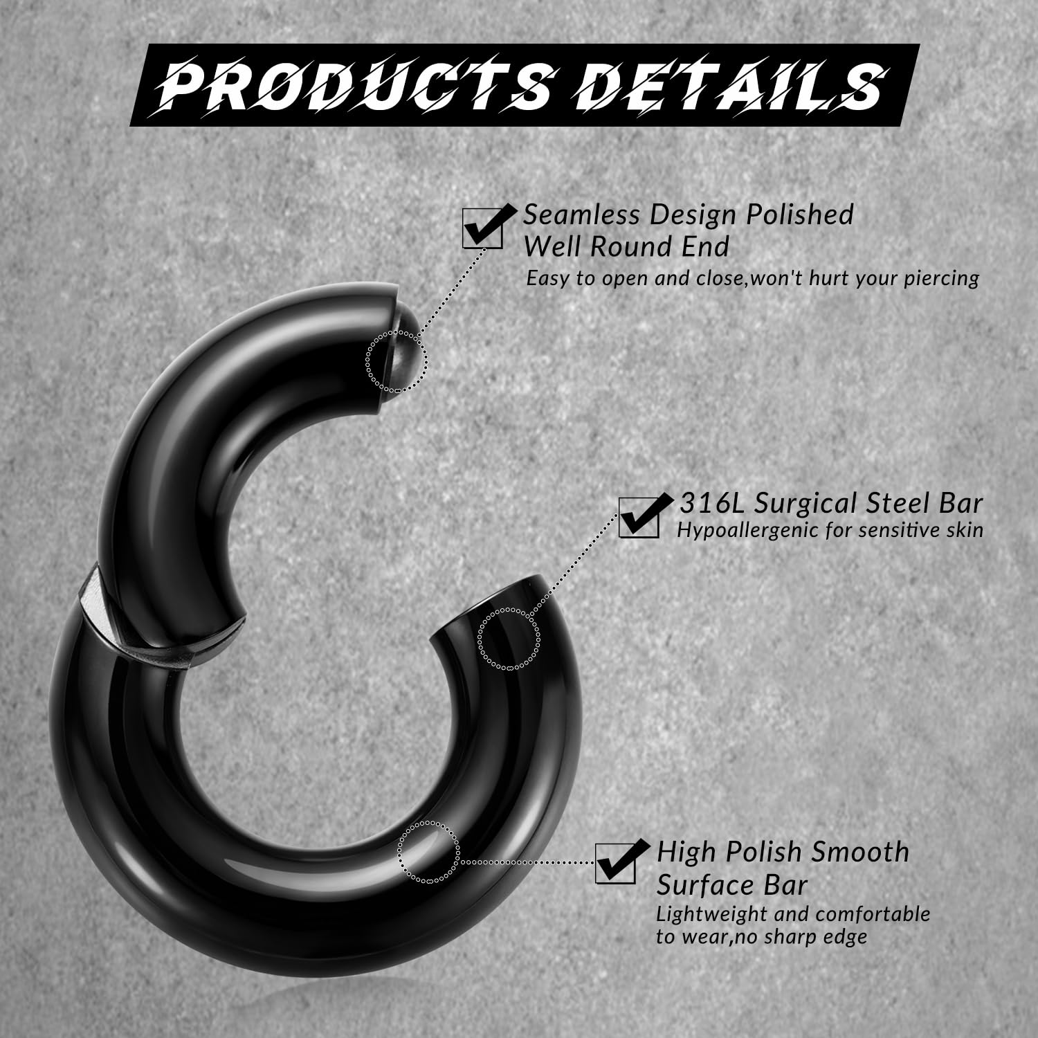 Size and Color: Gauge: 12 gauge (thickness: 2.0 mm). Inner diameter: 12 mm(1/2 inches). Color: Black. Please check the inside diameter carefully according to the size chart of the hoop nose ring