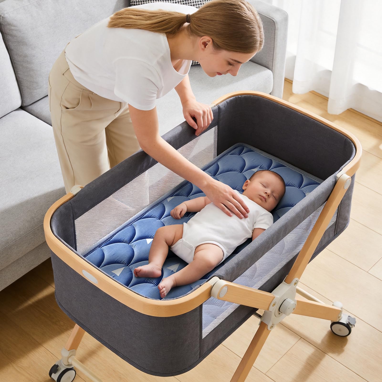 Material: Baby Bassinet Mattress is made of high-quality soft and wear-resistant brushed fabric, and filled with odor free high-quality foam, making it comfortable, breathable and odor free.