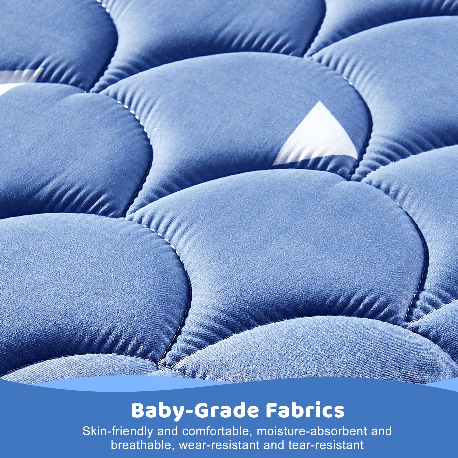 Double sided use: The front side is made of comfortable and breathable fabric, allowing babies to sleep soundly, while the back side is made of waterproof fabric, which is not afraid of liquids and can be used in both home and outdoor scenarios.