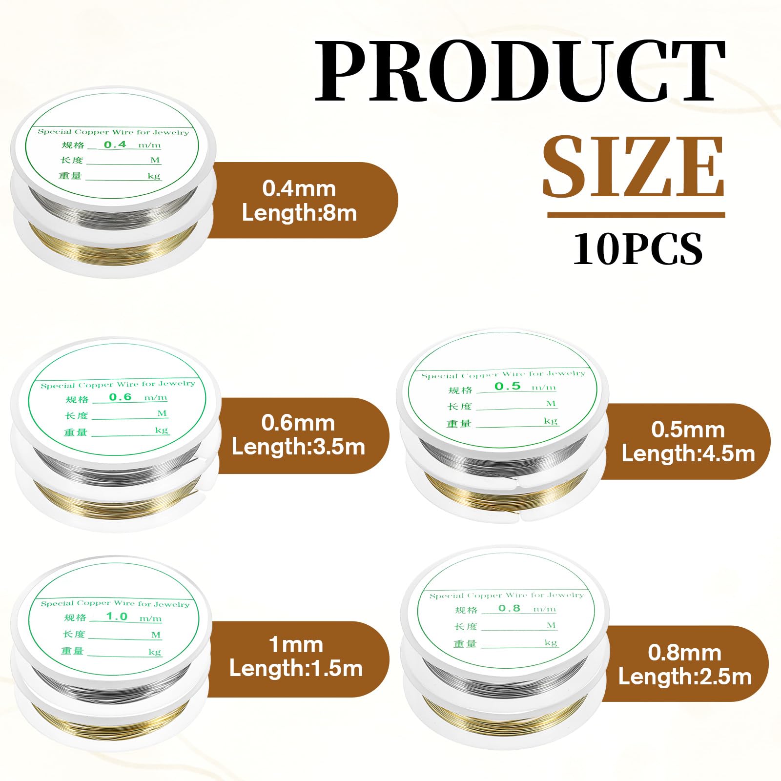 [Best Value Set] This gold jewelry wire set of 10 jewelry wire rolls offers excellent value for your crafting investment. Each size comes in gold and silver finishes, providing maximum flexibility for color-coordinated projects
