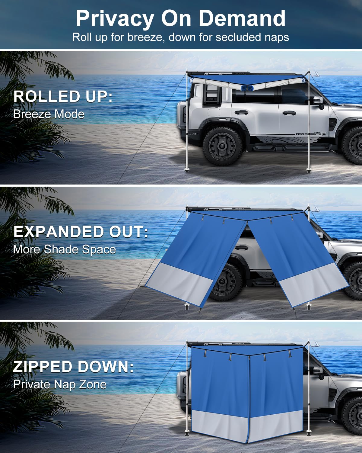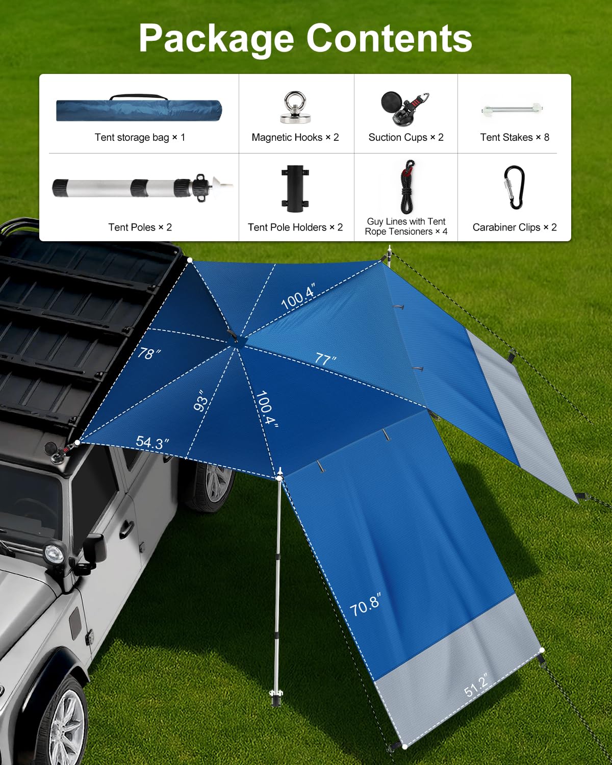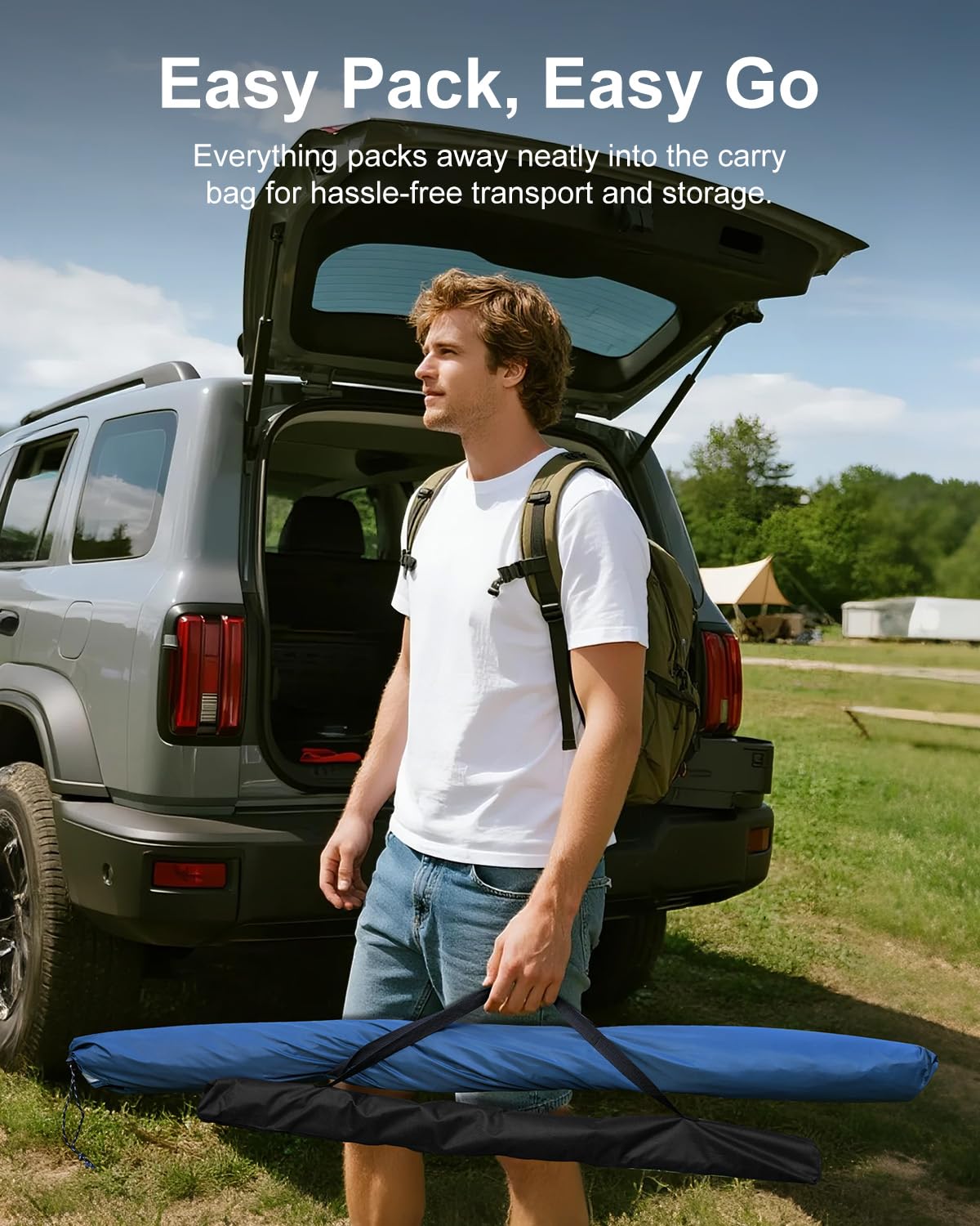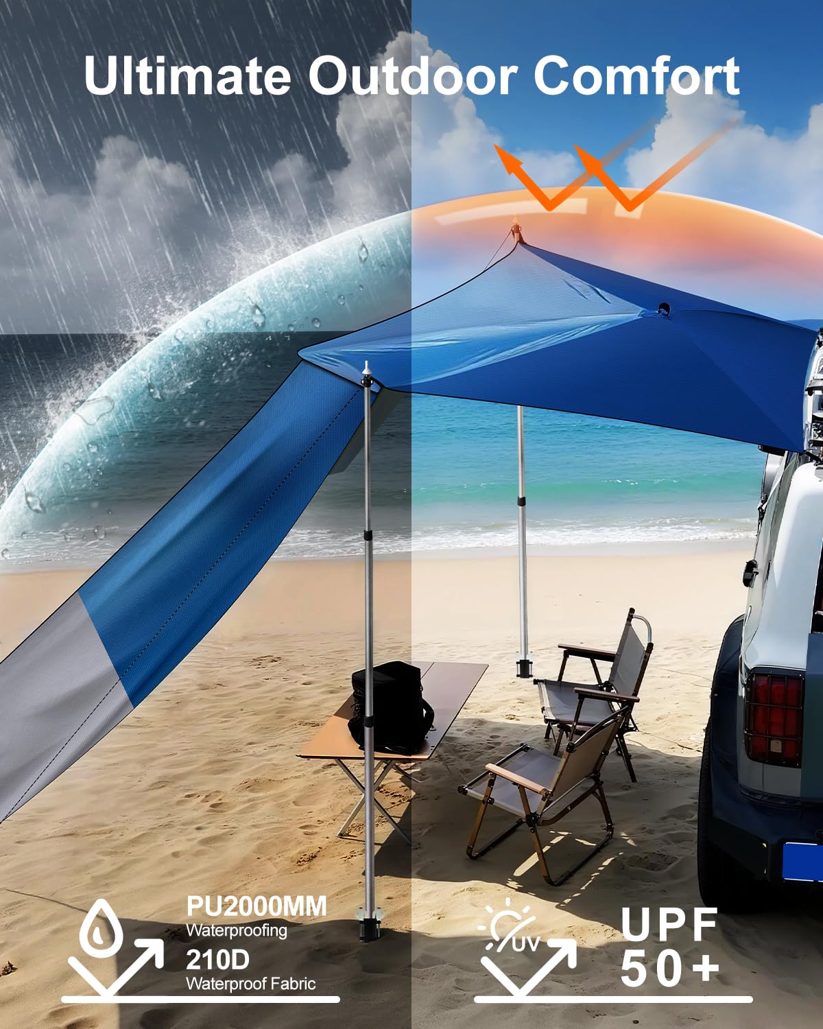 Portability Meets Convenience: Weighing just 7.7 lbs, our car awning packs into the included carry bag for easy storage in your trunk or backseat. Perfect for weekend getaways or spontaneous road trips, it comfortably fits 2-4 people.
