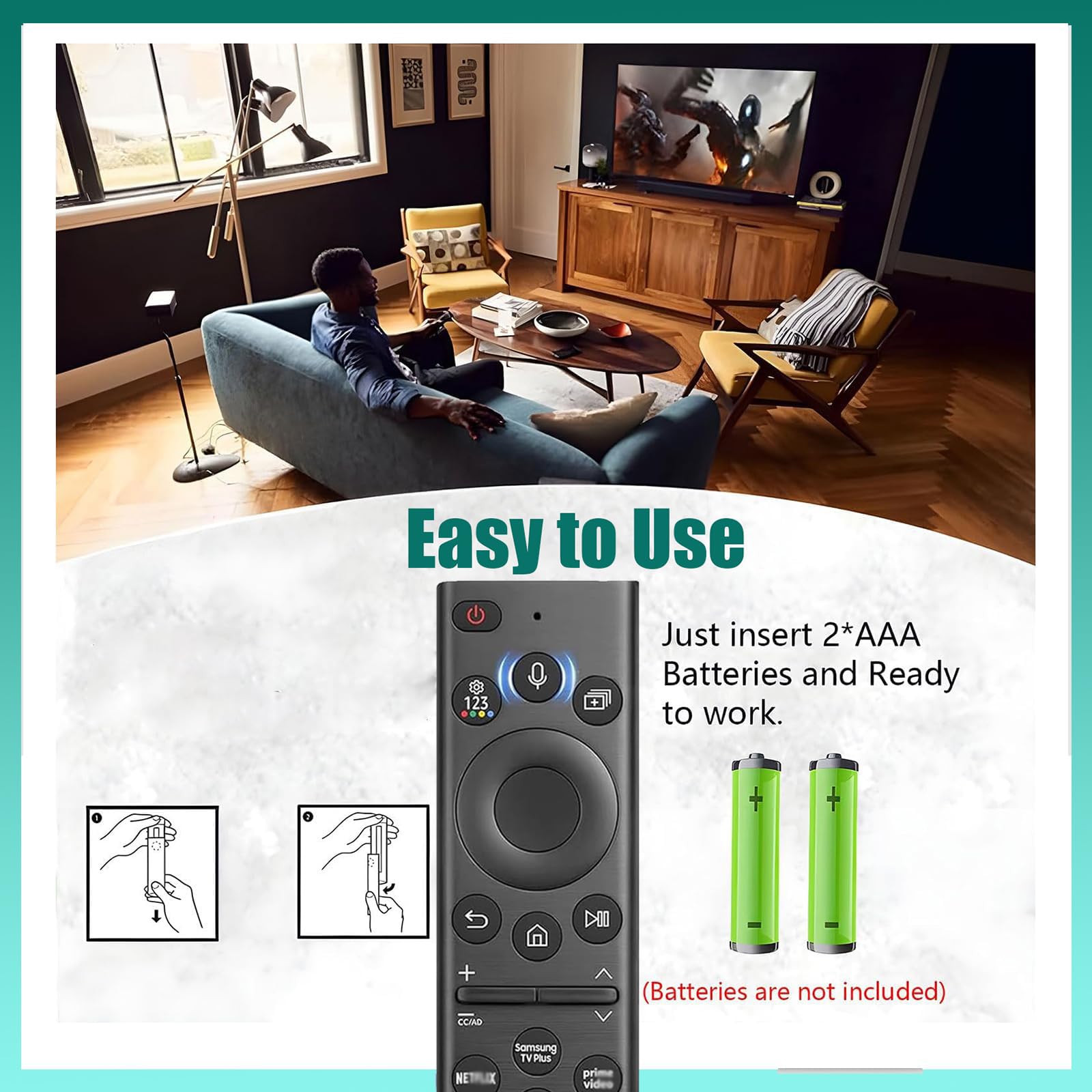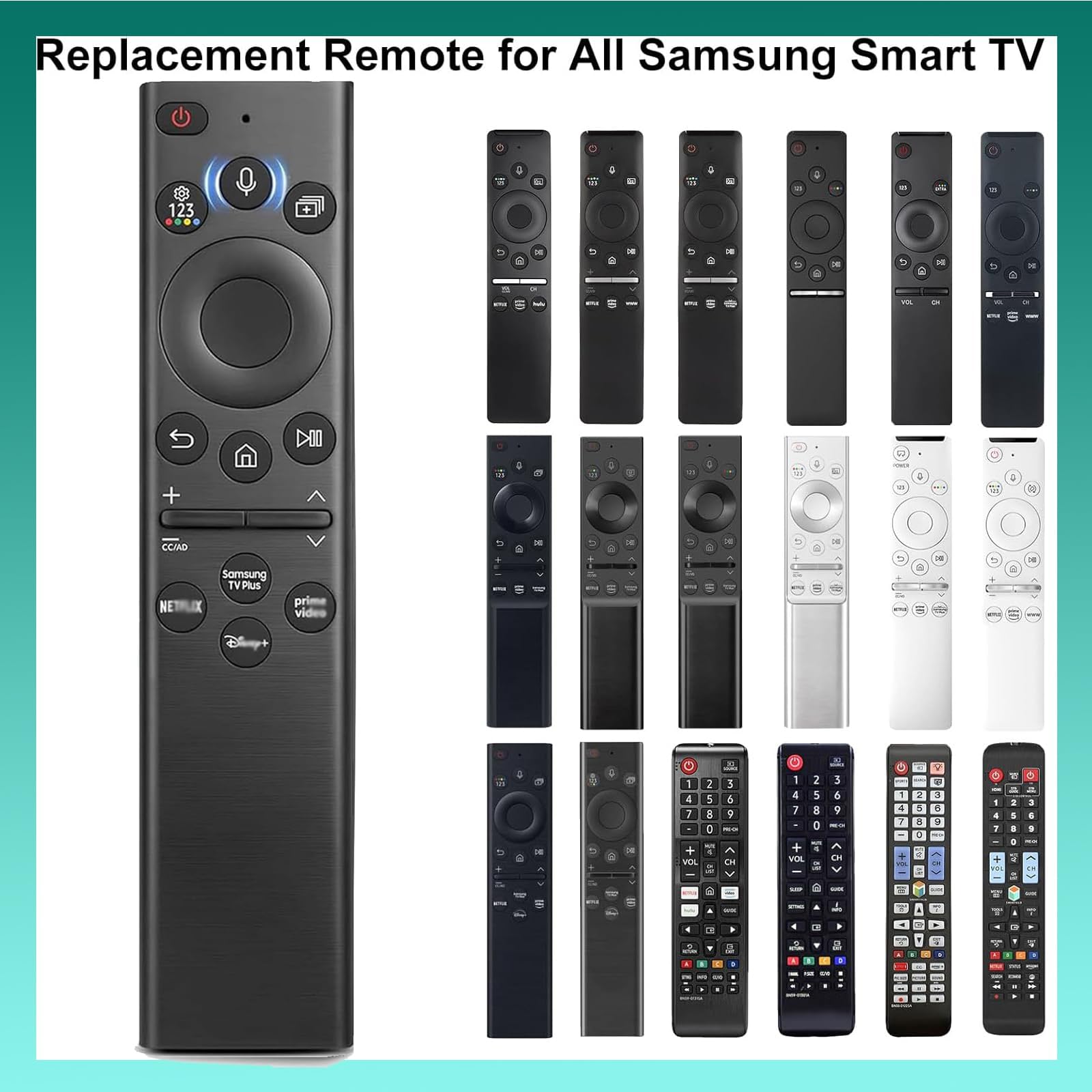 [Wide Compatibility] Compatible with Samsung Frame TV Remote Including 6 Series, 7 Series, 8 Series, 9 Series QN800A,QN90A,QN900A,Q60A,Q70A,Q80A,QN85A,AU8000,TU9010,RU9000, TU7000,TU8000,TU8300,Q60T,Q70T,Q80T,Q90T ,Q800T,Q900TS,Q950TS,LST7,LS05,RU8000,Q60T, TU8000, TU8200, TU8300, TU850D, TU9000,Q70T, Q80T, Q90T, Q800T, Q900TS, Q950TS, LST7, LS05, LS03, RU8000, Q50, Q60, Q70, Q80, Q90, Q900, NU8000, NU8500, MU8000, Q6F, Q7F, Q7C, Q8F, Q9F, N5300, NU6900, NU7100, NU7300, MU630, MU650, MU700, MU800, MU850, MU6300, MU6500, MU7000, MU7500, MU9000, KU6290, KU6270, KU7000, RU7100 CU7000 CU8000 DU6900etc.