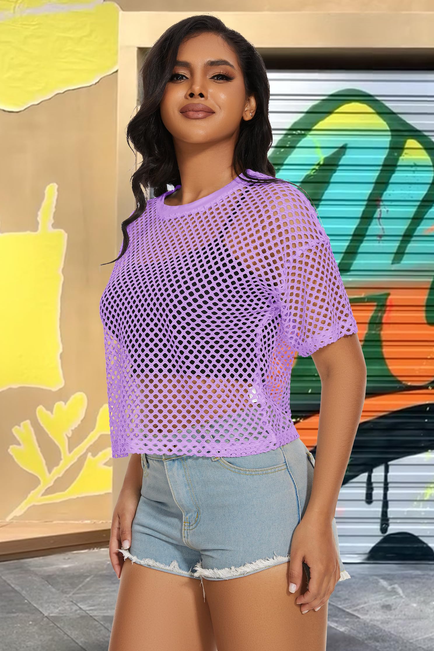 Feature: Sheer mesh top, see through, short sleeves, crew neck, casual style, regular fit, transparent fishnet woman tops add glamour and allure to your outfit.