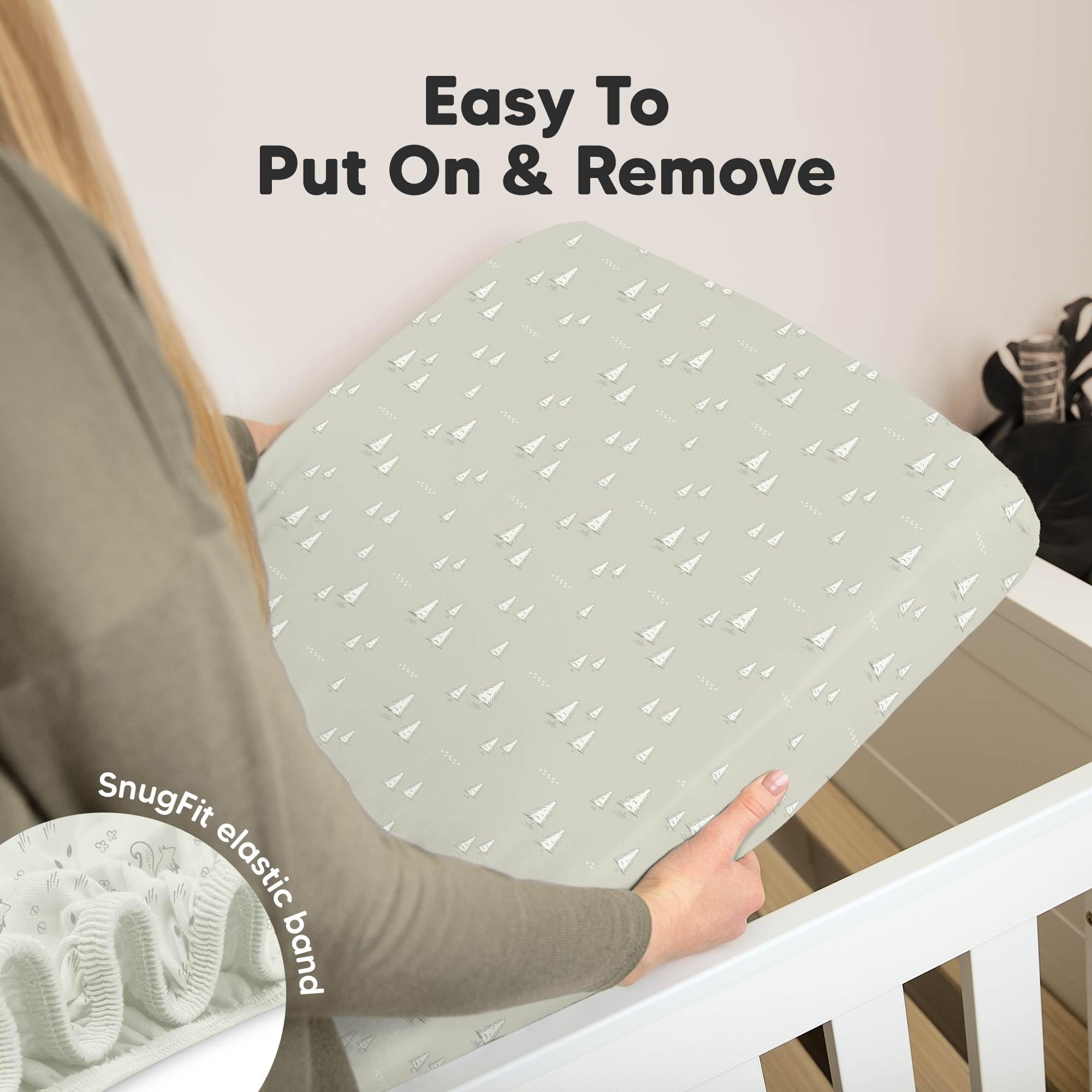 Easy To Put On - Our baby sheets for crib use SnugFit Tech, a smart fabric knit that stretches effortlessly for quick fitting and removal of the toddler bed sheets. No more struggling with rigid fabric!