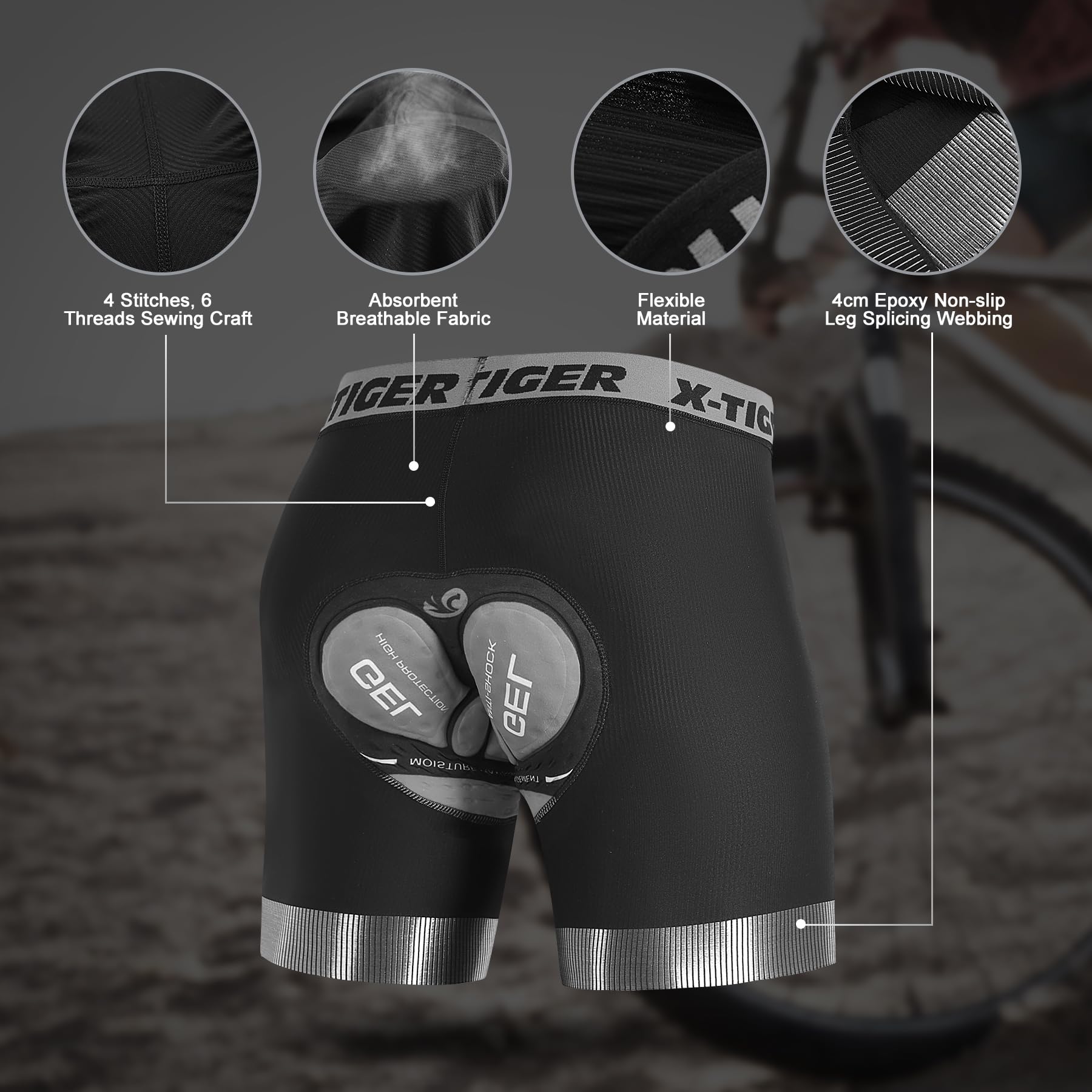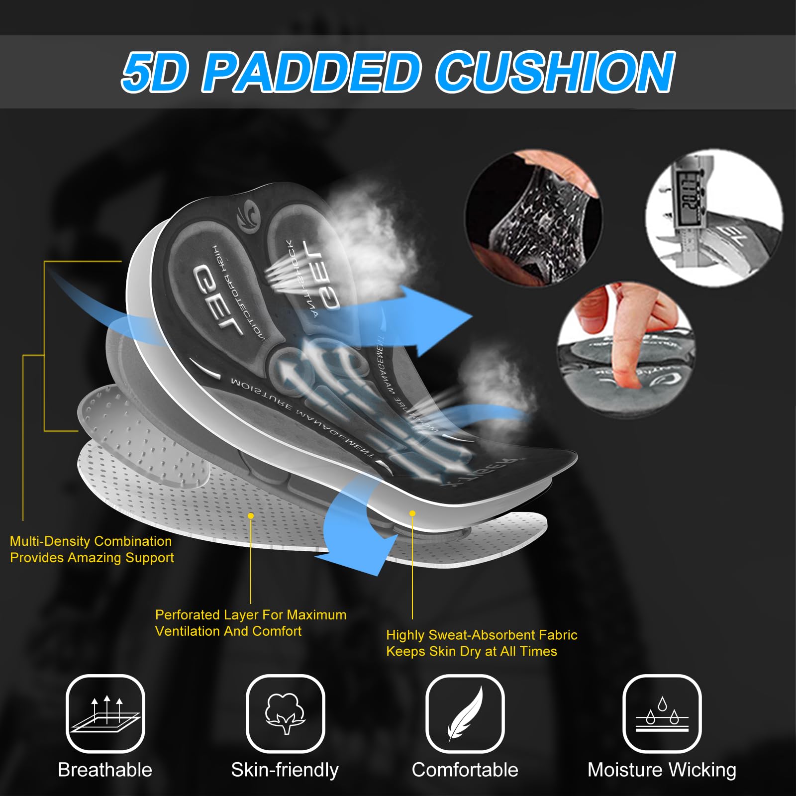 5D Padded: Mens cycling underwear comes with 5D gel padding that effectively dampens shock and reduces pressure and pain in the buttocks. Ergonomic fit, soft and comfortable for your long rides.