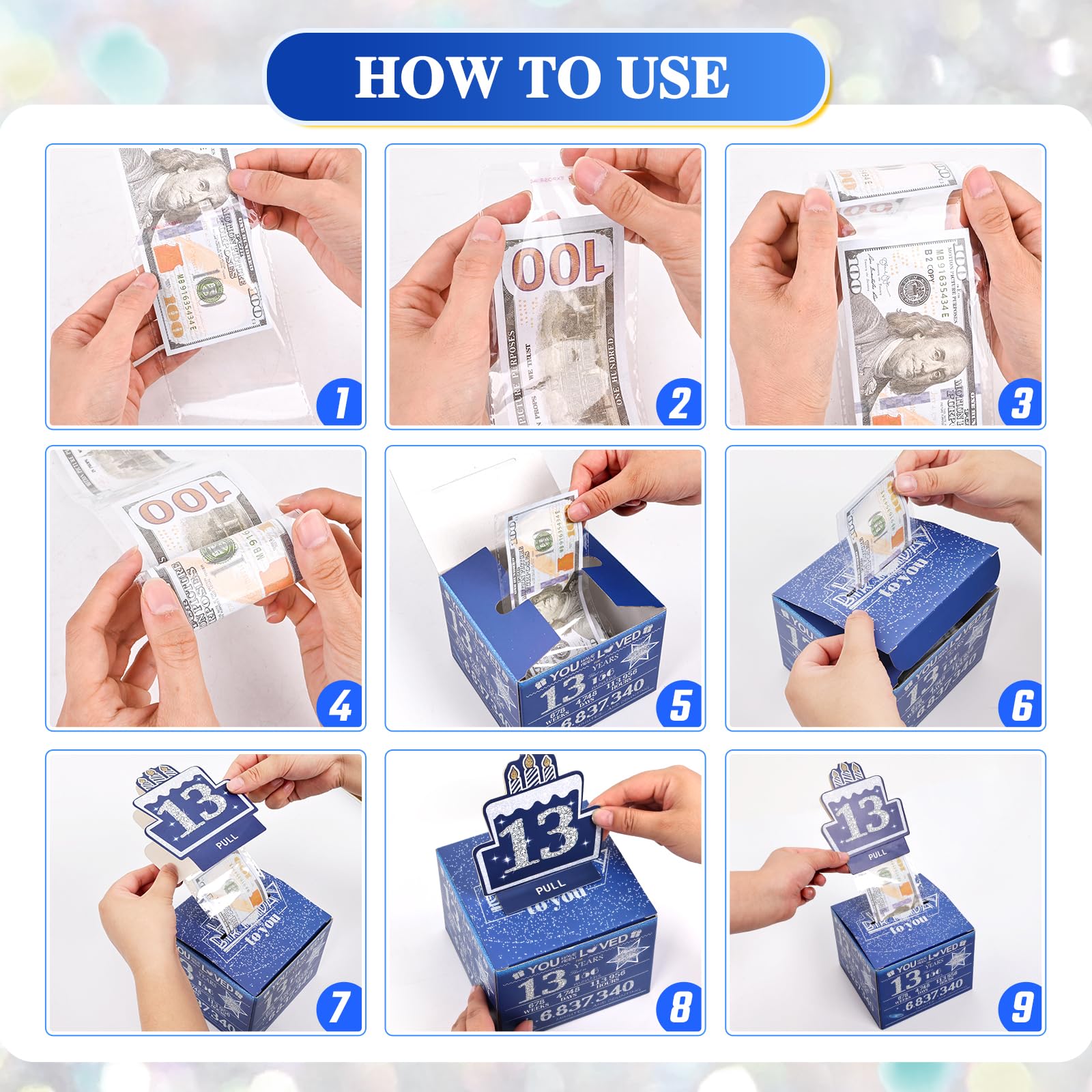 13 Year Old Boy Gifts Easy to Assemble : First, put the money in a plastic bag. Second, paste the plastic bag together. Third, roll up the money, put it in the box, and pull out one end of the plastic bag from the drawer slot to paste it with the birthday cake card. then One pull and the money will flow out.