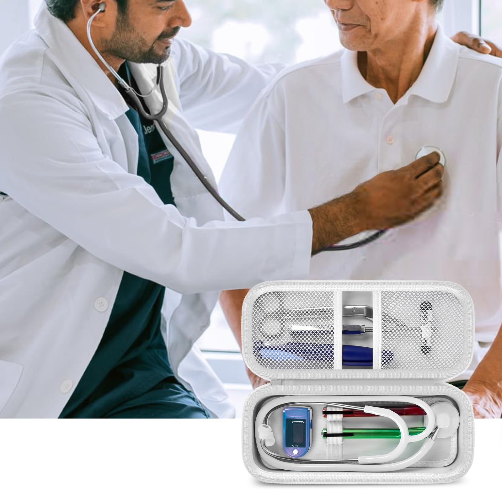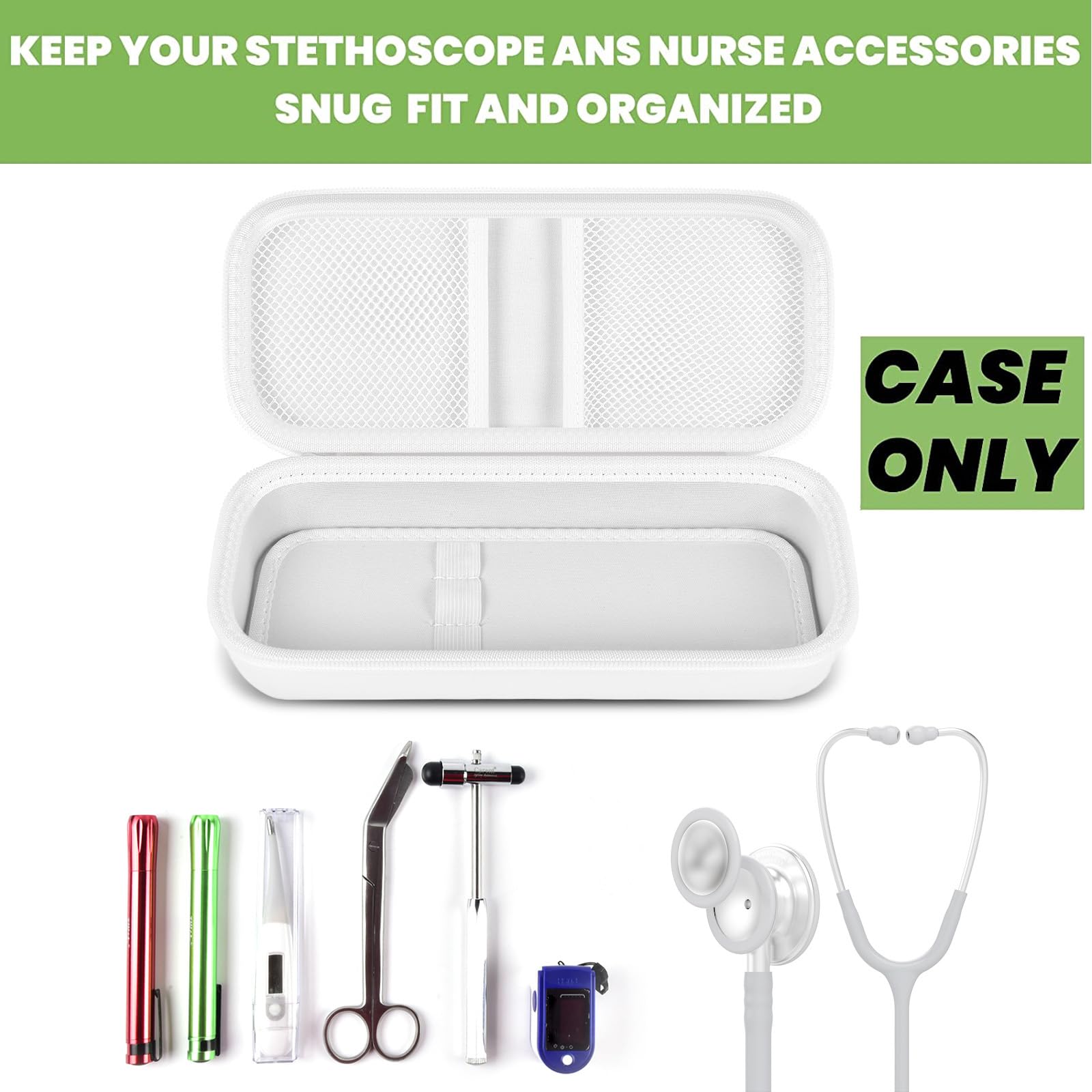 Stethoscope Case of Comprehensive Protection: This case is made of the hard EVA materials, the anti-static, shockproof layer and fluffy fabric inner layer fully padded and effectively absorb impacts, compact fully protect the stethoscope, neurological reflex hammer, medical thermometer, pulse oximeters, and other Littman stethoscope accessories. Prevent shaking and loss; avoid stethoscope breaking.
