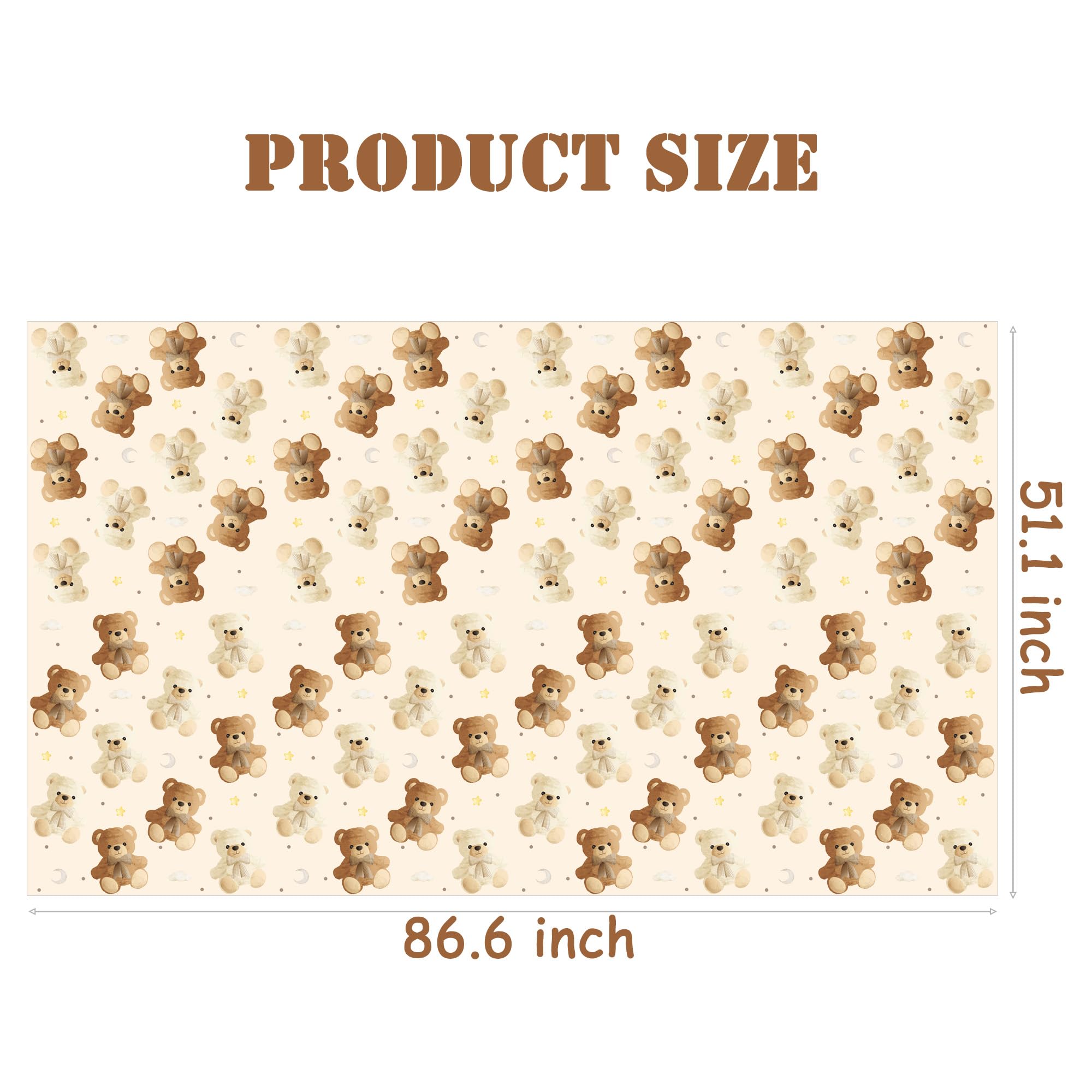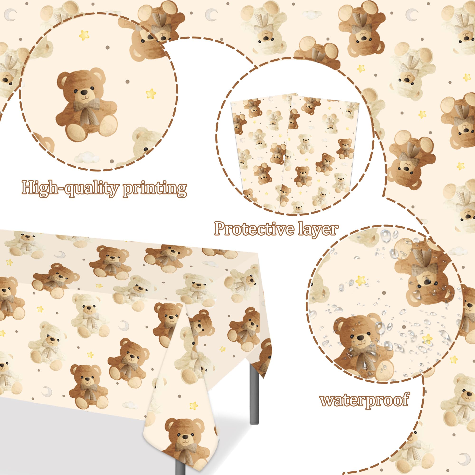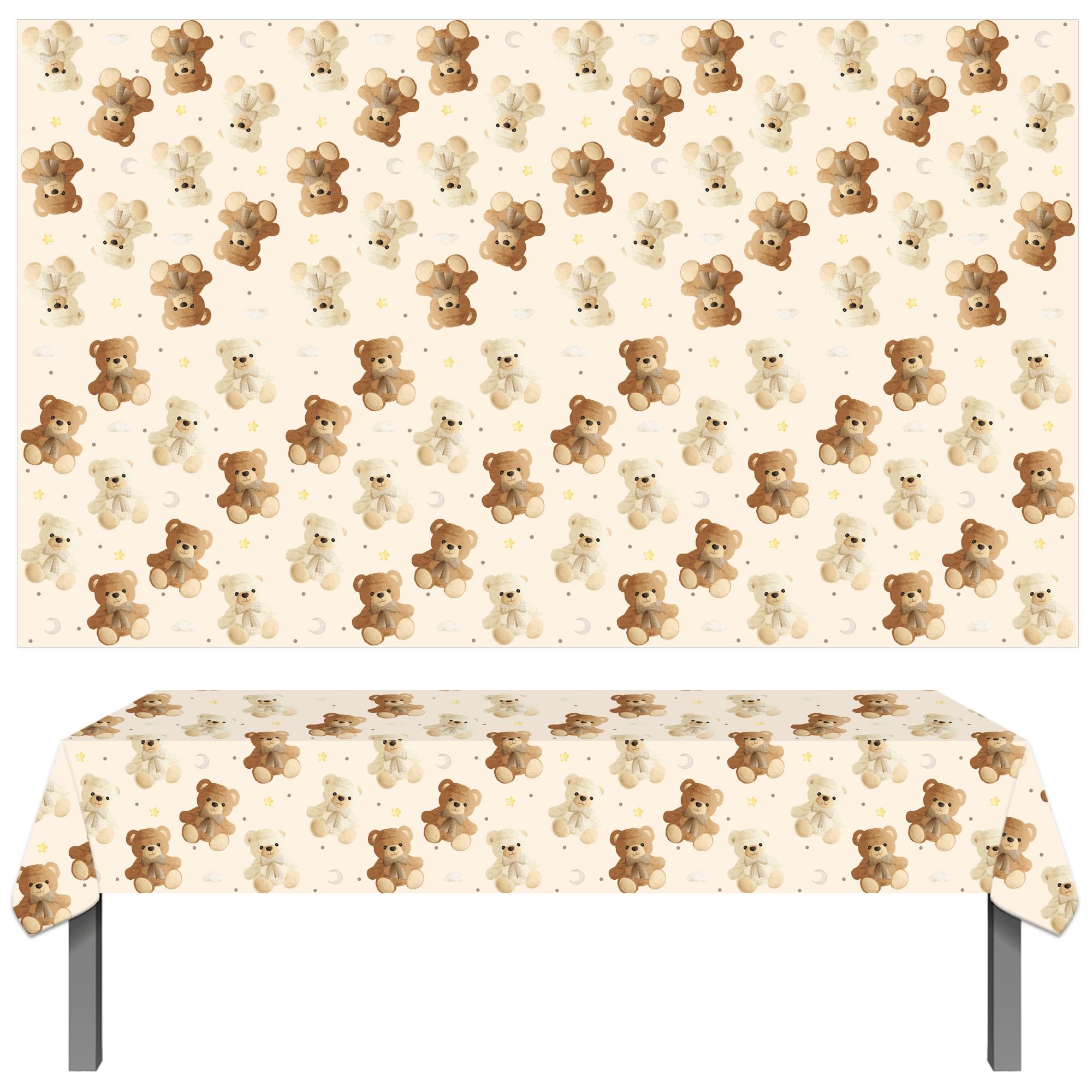Set of 2pcs:You will get 2pcs rectangular brown bear tablecloths featuring adorable brown and beige teddy bear patterns with stars and moon accents on cream background