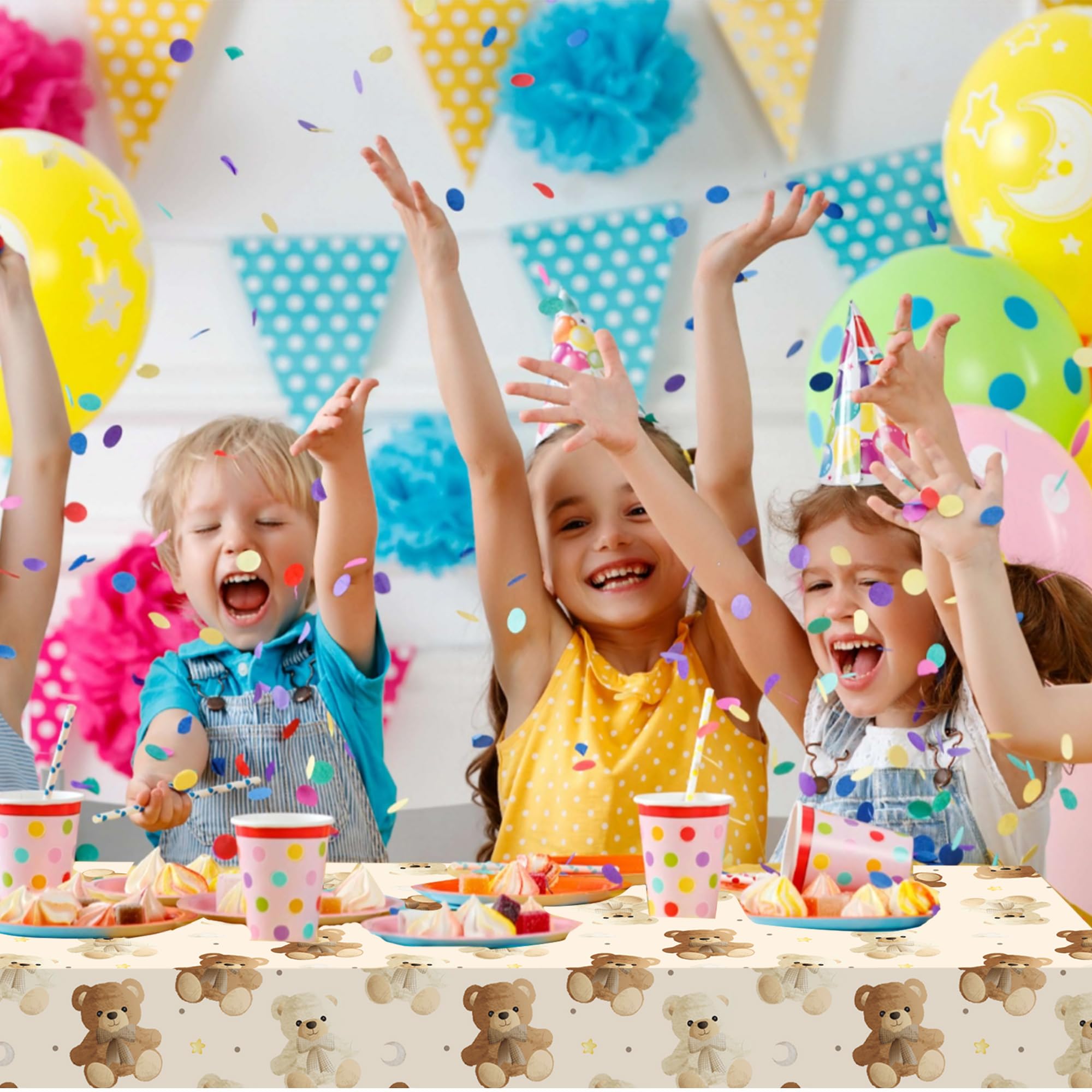 Quick cleanup:This bear birthday party tablecloths are disposable design, easy to clean up after party. Saves time and effort while maintaining the cheerful bear pattern's appearance