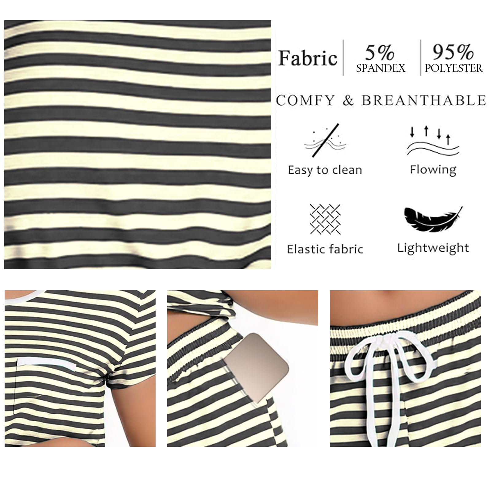 Adjustable & Relaxed Fit – Drawstring waistband on the pajama shorts provides a customizable fit, while the loose-cut design enhances airflow for effortless lounging or sleeping.