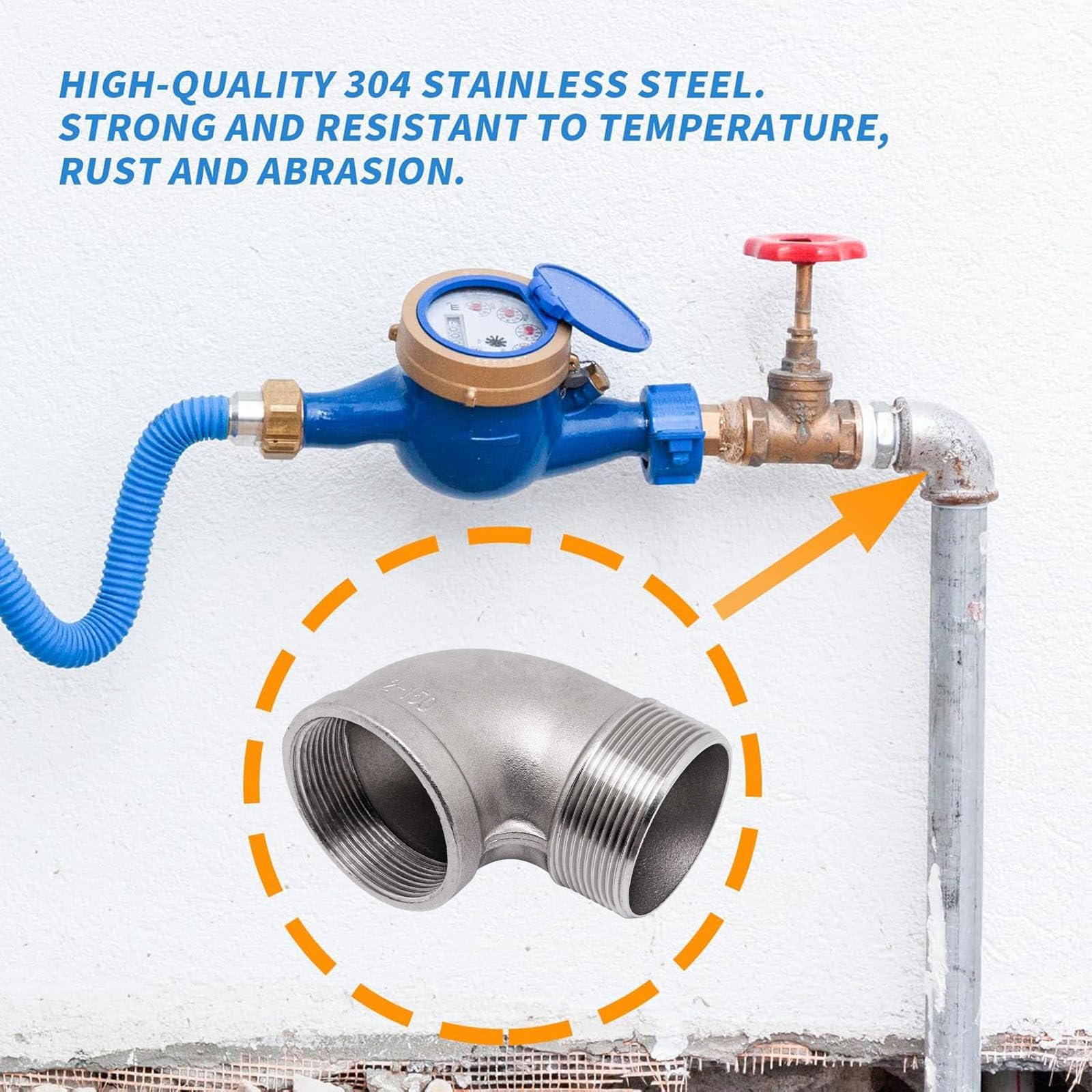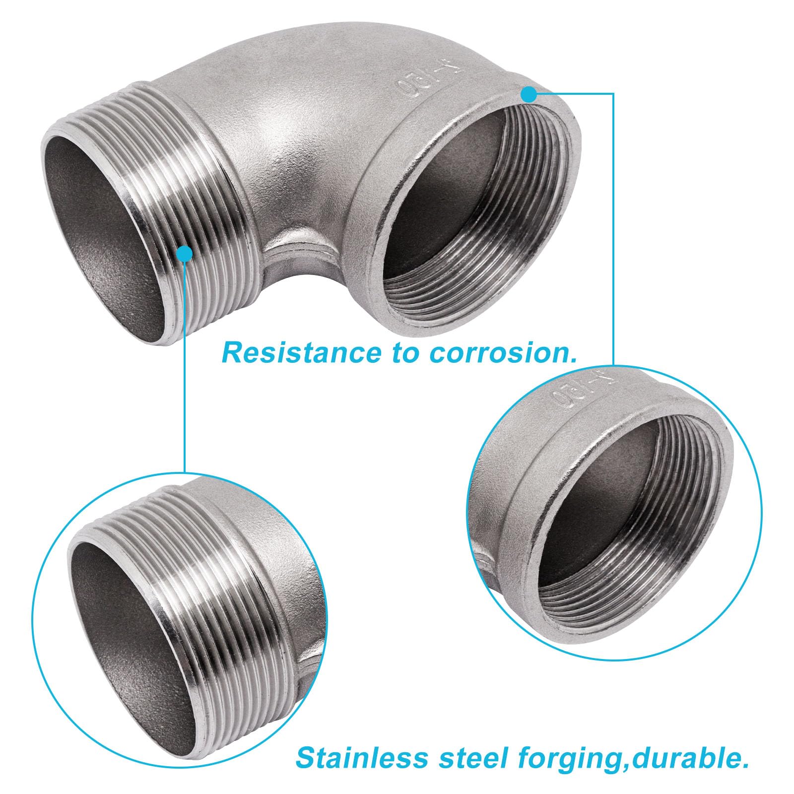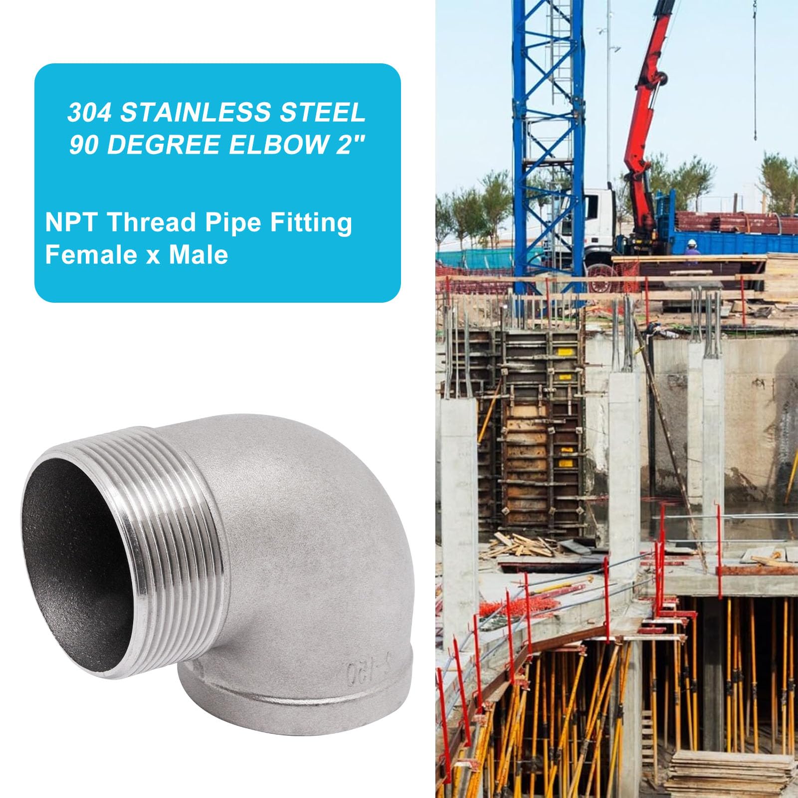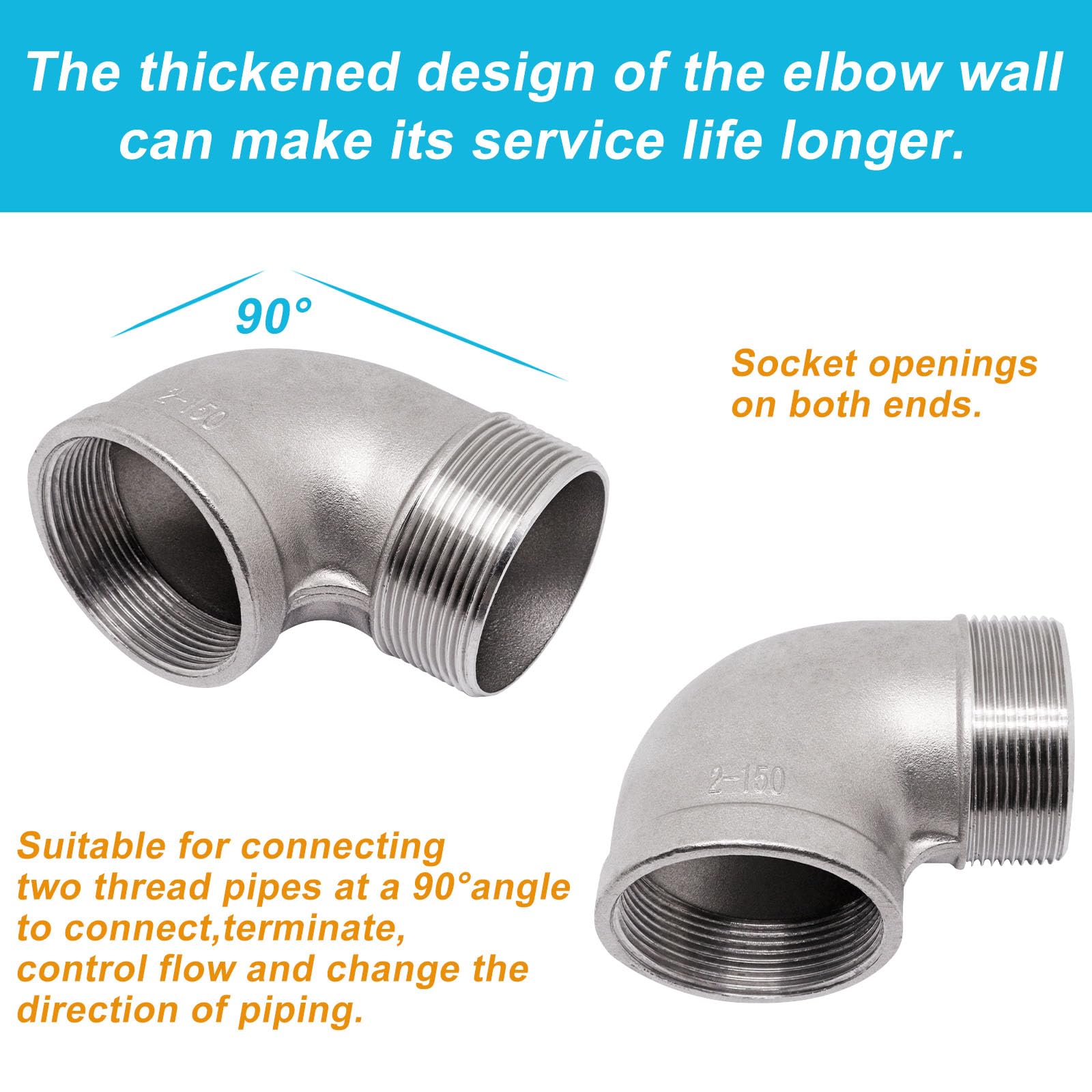 Main Features 1.The elbow is made of high-quality 304 stainless steel,which is strong and resistant to temperature,rust and abrasion. 2.Even in the harsh heavy duty environment with high humidity and high temperature, it is not easy to be damaged. 3.The thickened design of the elbow wall can make its service life longer. 4.It is suitable for electrician,water pipe,automobile,non-motor vehicle and other mechanical maintenance. 5.The elbow pipe fitting has socket openings on both ends and is suitable for connecting two thread pipes at a 90°angle to connect, terminate, control flow and change the direction of piping. Product Specifications Product Name: 90 Degree Elbow Pipe Fitting. Material: 304 Stainless Steel. Type: 2" NPT Threaded. Shape: Elbow (Male x female). Connection: NPT-NPT. Color: Silver. Operating Temperature Range: -20℃ ~ 200℃/ -4℉ ~ 392℉. Package Content: 1Pcs 90 Degree Elbow Pipe Fittings. Please check the size of your pipes or pipe fittings before placing an order.