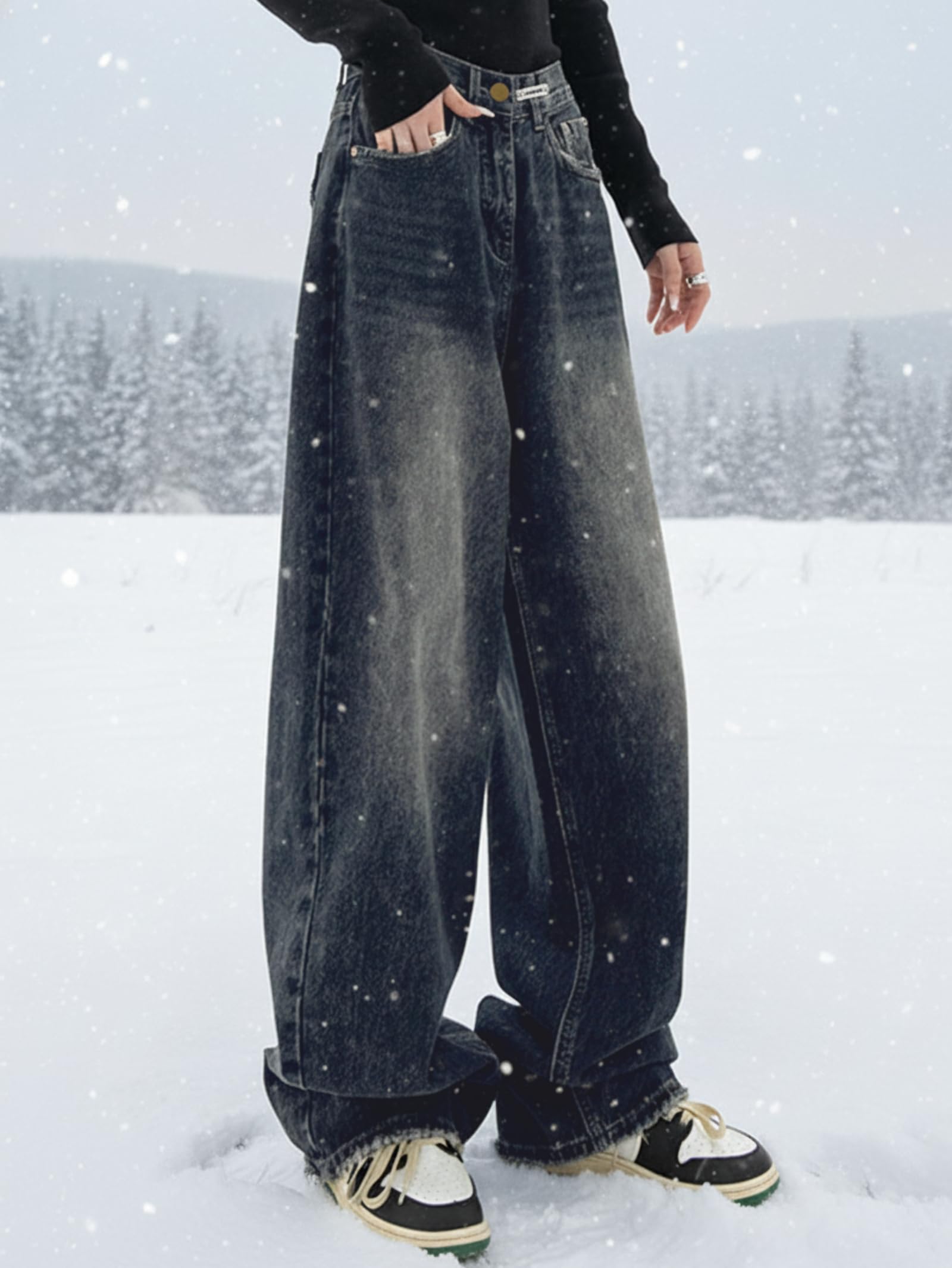 Stacked denim pants with pockets the loose leg design is suitable for a variety of leg types, for a little calf thick, standard legs, O-leg, X-leg, XO-leg girls can also be easily managed.