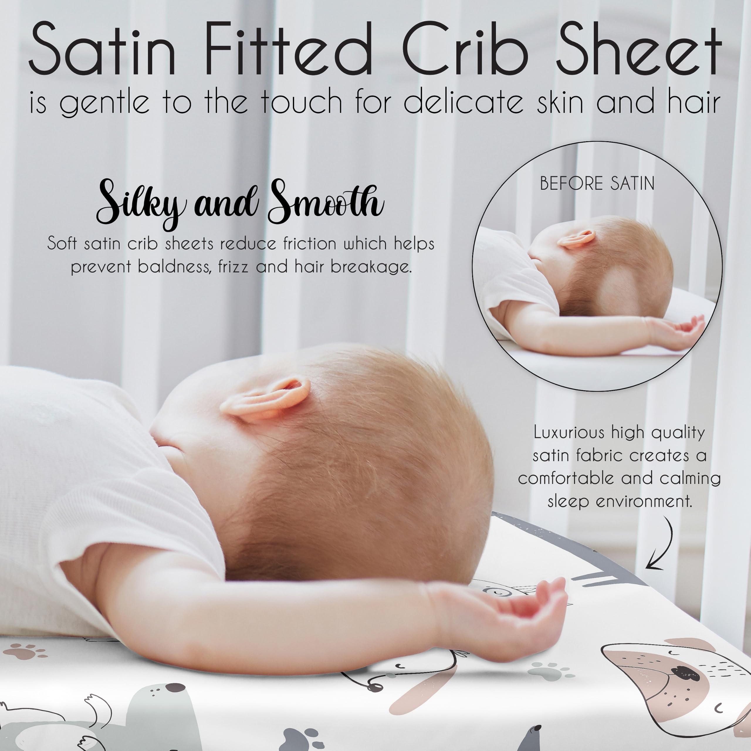 Satin fitted crib sheets are the perfect addition to your little ones nursery. With the use of the unique and luxurious satin fabric, help reduce baby hair loss, cradle cap, frizz and tangled hair to set up the ideal environment for a comfortable night sleep for your newborn. Keep a standard satin fitted cribsheet in your infant room and grab extras to use in between washes. The fully elastic bottom ensures a secure fit on most standard size cribs and toddler mattresses