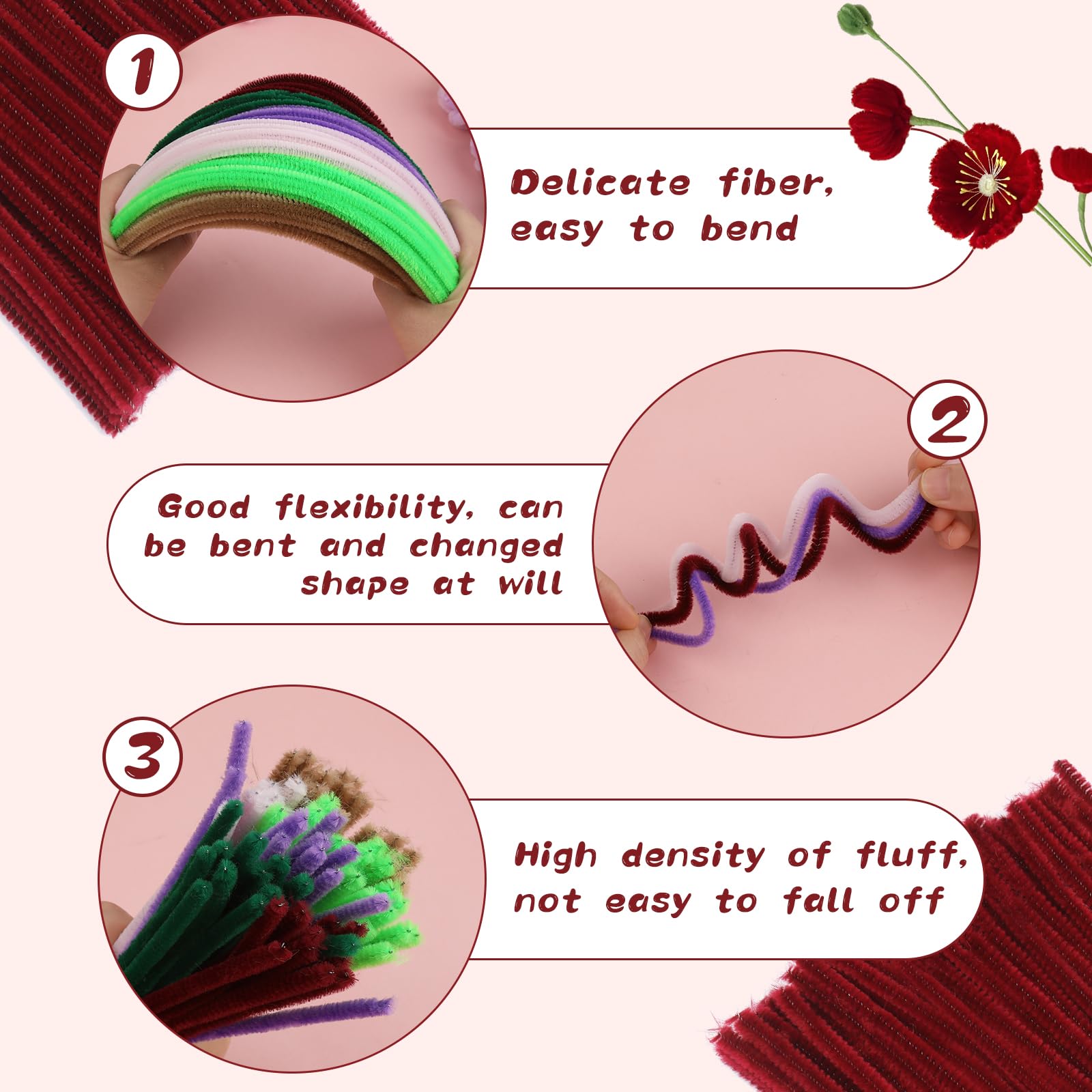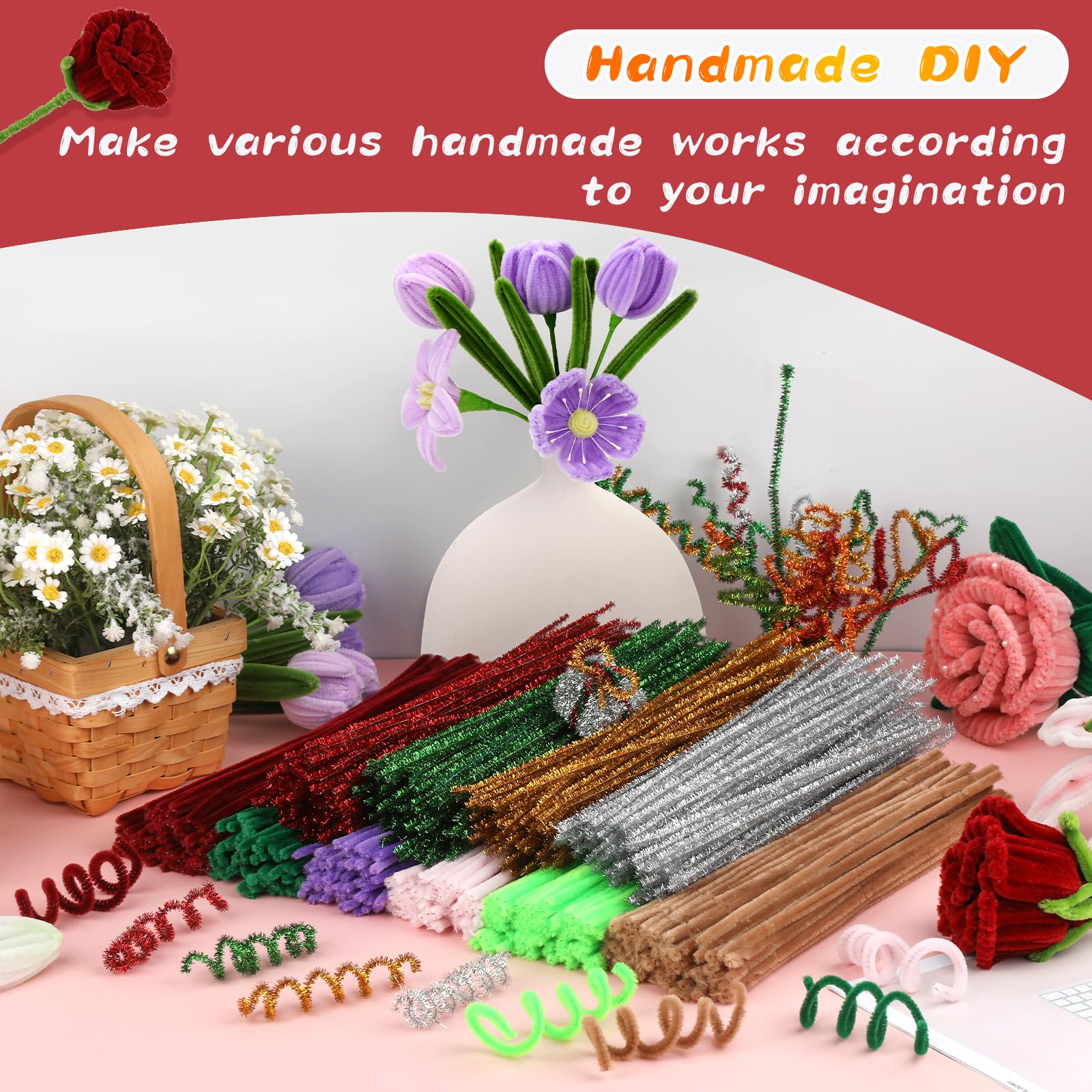 Soft Material: These pipe cleaners are made of wire and chenille material, durable, soft, and comfortable, it can be flexibly bent into creative shapes and figures