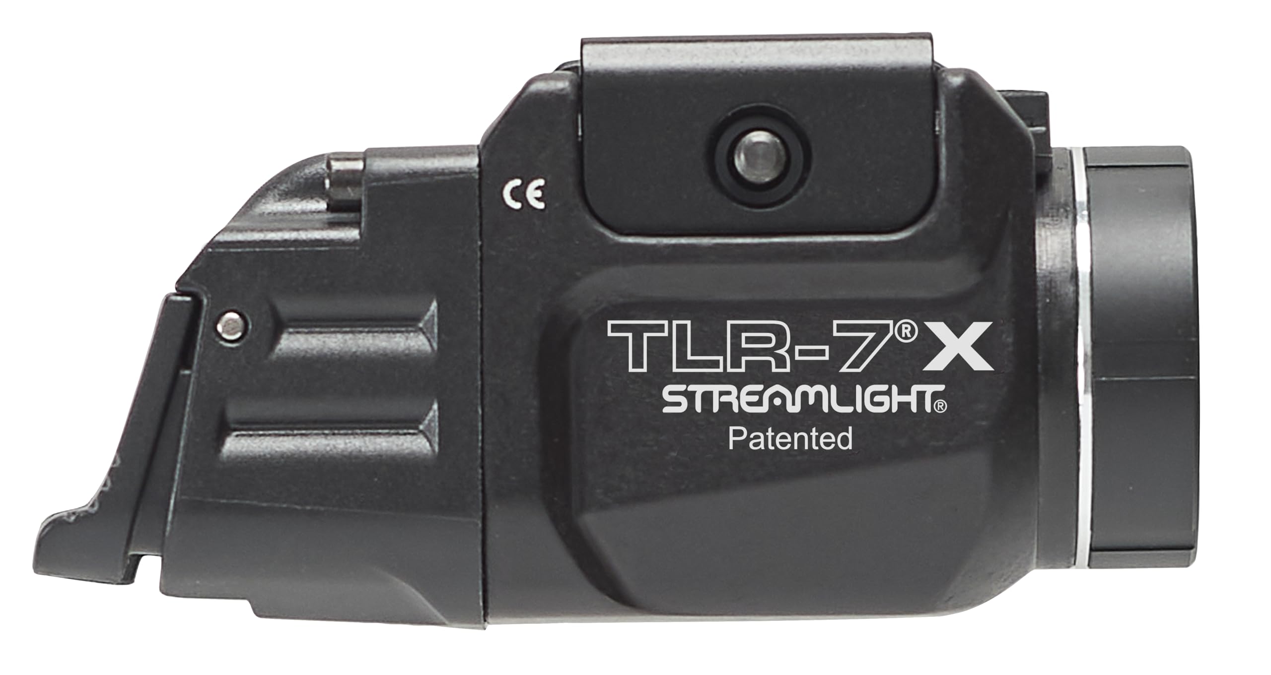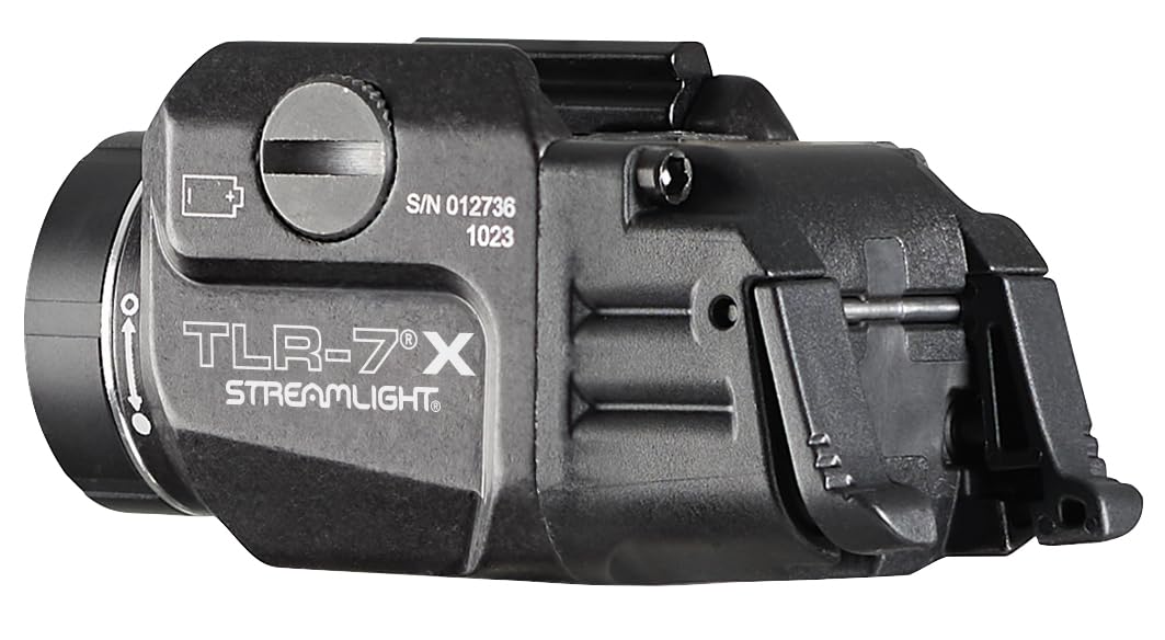 The Streamlight TLR-7 X features multi-fuel capability powered by either one (1) CR123A or one (1) Streamlight SL-B9 lithium-ion rechargeable battery pack, (sold separately), both delivering 500 lumens and 5,000 candela. The integrated rail clamp is designed to rapidly attach/detach from the side of the weapon, providing smooth installation and removal without having to put your hands in front of the muzzle. Customizable rear paddle switches, momentary and constant on operation, and a programmable strobe mode offer additional versatility for many tactical applications.