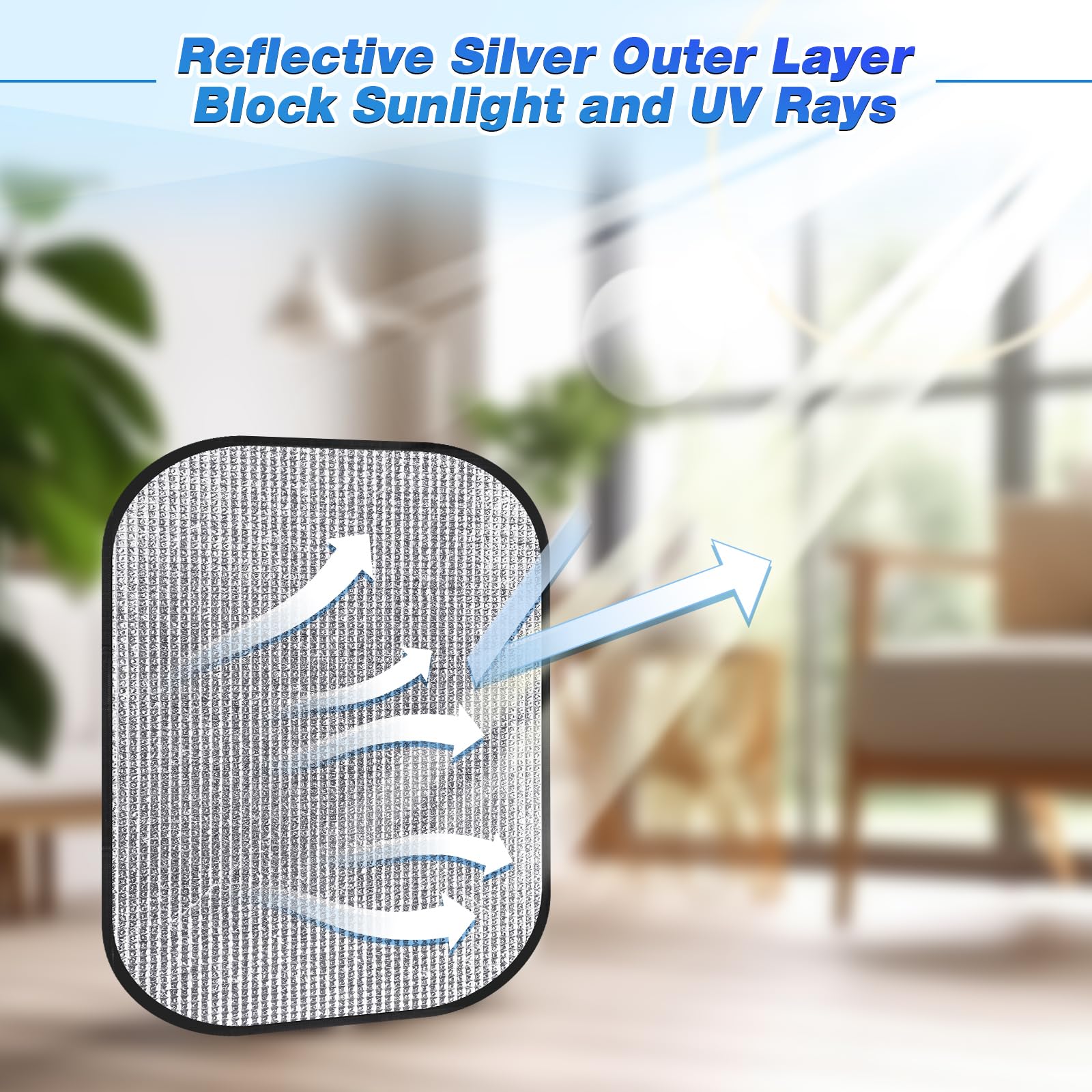 Three Layer Material Structure: the RV blackout window shade comprised of three layer material, the outer reflective silver aluminum foil bubbles layer repels sunlight and UV rays, the middle insulation cotton layer or bubble type material blocks heat, and the inner black or silver layer ensures privacy, ensuring your comfort no matter the season