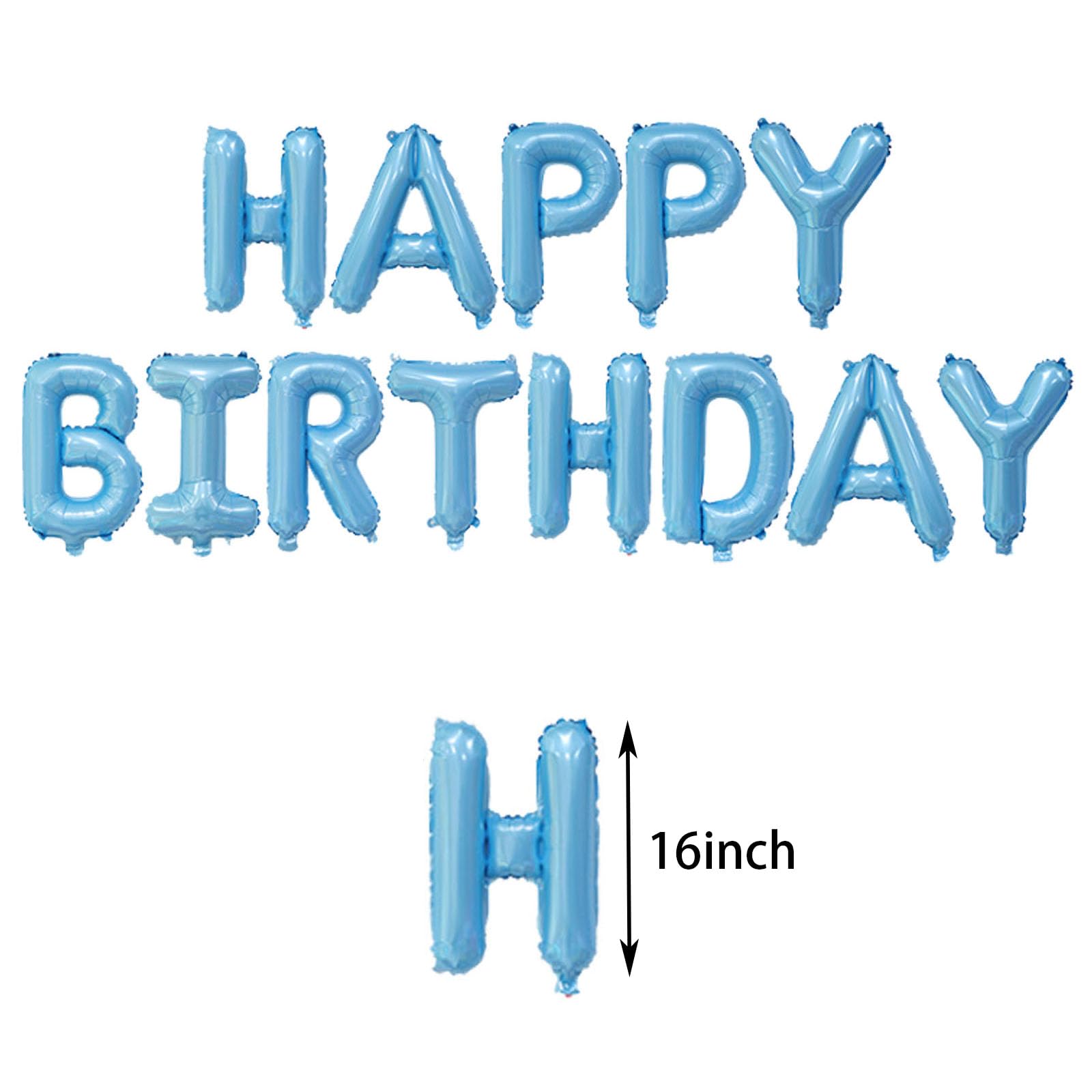Package:13 Pcs 16 inch 'HAPPY BIRTHDAY' foil letter balloons. MaterIal:Our balloons are made of high quality aluminum foil. Perfect decoration:Perfect color for any theme birthday parties.You can use ribbon to hang the HAPPY BIRTHDAY sign on the curtains,wall,living room,or anywhere else. Widely Application:Suitable for birthday party,baby shower and other on-site decoration,Your can celebrate special moments with children, friends, and family.