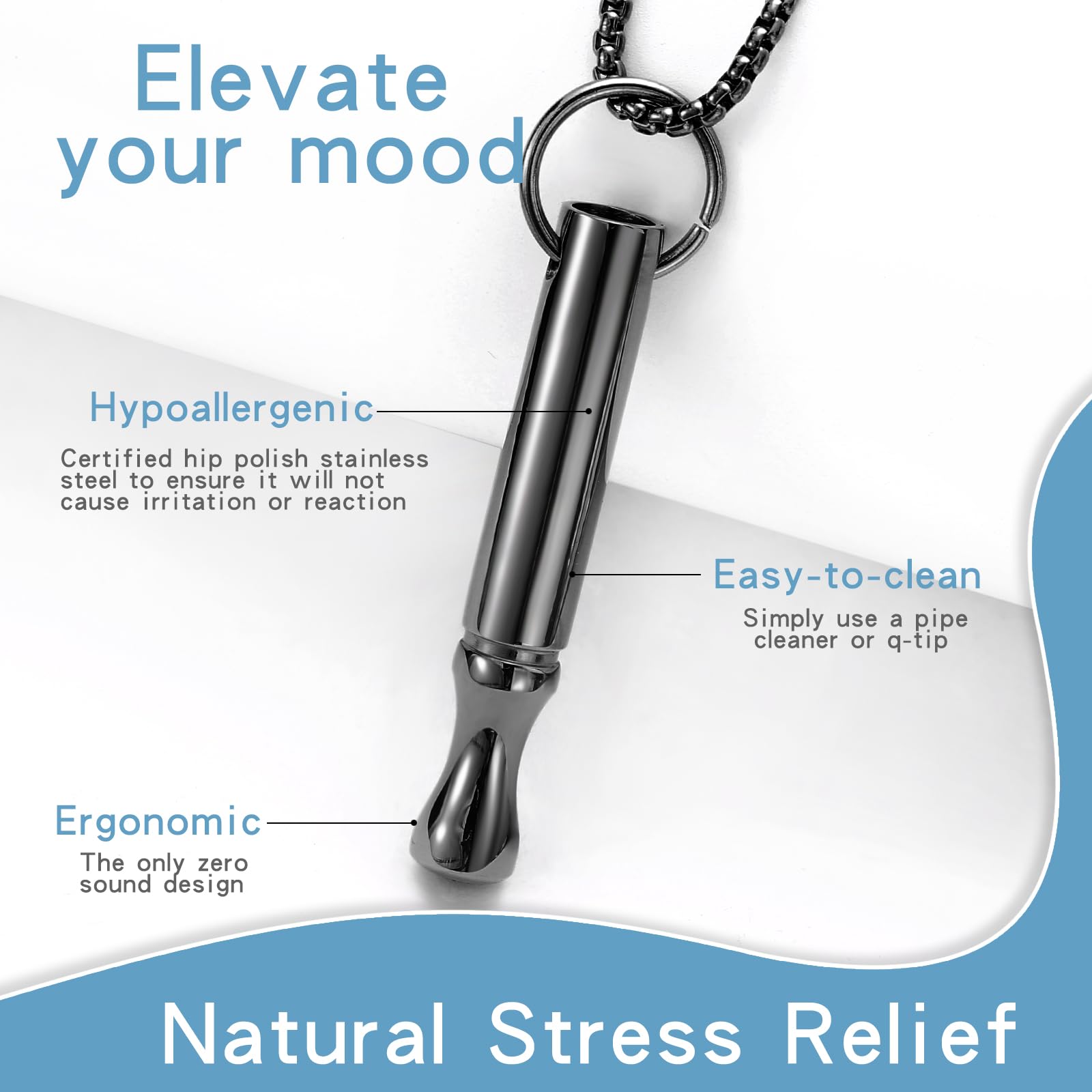 MINDFULNESS BREATHING NECKLACE: Take a slow inhale through your nose for 4 seconds, hold for 7 seconds, then exhale slowly using the breathing tool for 8 to 10 seconds. Repeat for several cycles. This breathing technique will naturally calm your body and mind.